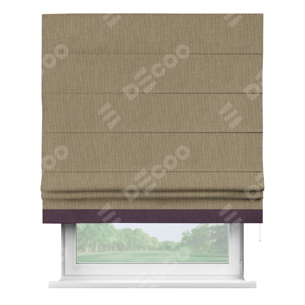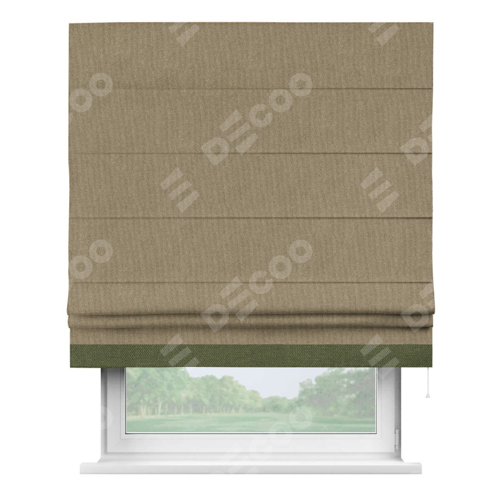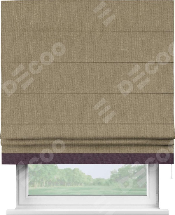 Римская штора «Кортин» для проема, лён димаут тёмно-бежевый с кантом Джестер
