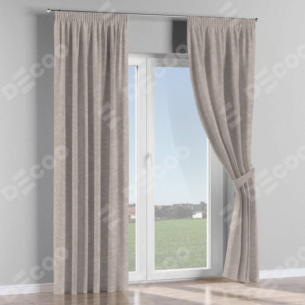 Комплект прямых штор, от производителя «Cortin», пошиты из ткани софт мрамор пудровый, артикул ткани 93578. С изнаночной стороны в верхней части штор пристрачивается шторная лента с декоративными складками «Карандаш». Для создания элегантных складок прямые шторы шьются по стандарту с коэффициентом 1:2 (на 100 см. ширины проёма 200 см. ширины ткани).