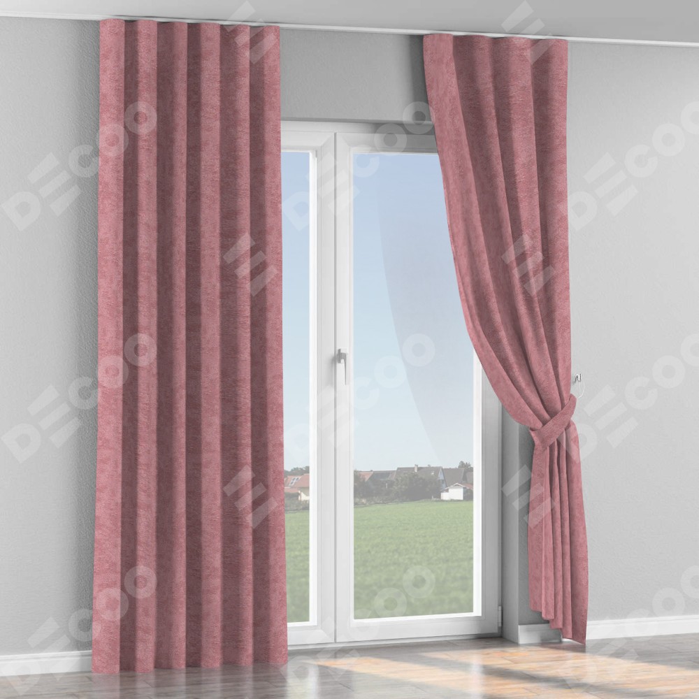 Комплект прямых штор, от производителя «Cortin», пошиты из ткани софт мрамор розовый, артикул ткани 93584. С изнаночной стороны в верхней части штор пристрачивается шторная лента с декоративными складками «Волна». Для создания элегантных складок прямые шторы шьются по стандарту с коэффициентом 1:2 (на 100 см. ширины проёма 200 см. ширины ткани).