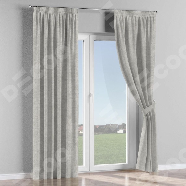 Комплект прямых штор, от производителя «Cortin», пошиты из ткани софт мрамор светло-серый, артикул ткани 93582. С изнаночной стороны в верхней части штор пристрачивается шторная лента с декоративными складками «Карандаш». Для создания элегантных складок прямые шторы шьются по стандарту с коэффициентом 1:2 (на 100 см. ширины проёма 200 см. ширины ткани).
