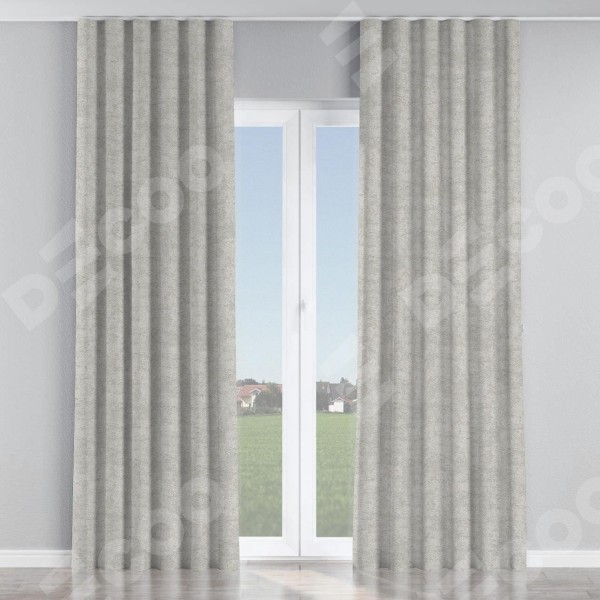 Комплект прямых штор, от производителя «Cortin», пошиты из ткани софт мрамор светло-серый, артикул ткани 93582. С изнаночной стороны в верхней части штор пристрачивается шторная лента с декоративными складками «Волна». Для создания элегантных складок прямые шторы шьются по стандарту с коэффициентом 1:2 (на 100 см. ширины проёма 200 см. ширины ткани).