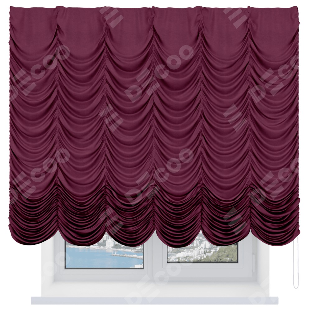 Французская штора производителя «Cortin», используется для проёма, пошита из ткани вельвет бордовый, артикул ткани 85553. Имеет универсальный механизм и подходит для монтажа: на потолок и на стену.