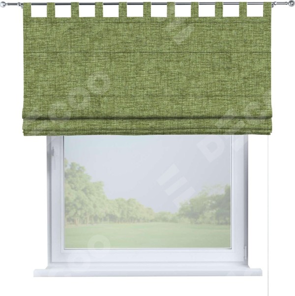 Римская штора производителя «Cortin», используется для проёма, пошита из ткани рогожка димаут травяной, артикул ткани 91021. Данная модель пошита на петлях, комплектуется на выбор круглым карнизом и подходит для монтажа на стену. Римская штора на петлях имеет простую систему регулировки высоты, отличительным преимуществом данной модели является простой способ монтажа. Достаточно повесить ее на трубу и штора готова!