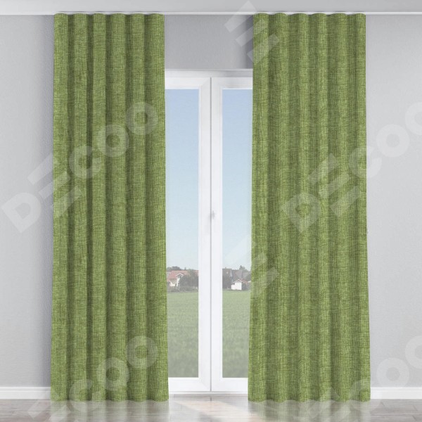 Комплект прямых штор, от производителя «Cortin», пошиты из ткани рогожка димаут травяной, артикул ткани 91021. С изнаночной стороны в верхней части штор пристрачивается шторная лента с декоративными складками «Волна». Для создания элегантных складок прямые шторы шьются по стандарту с коэффициентом 1:2 (на 100 см. ширины проёма 200 см. ширины ткани).