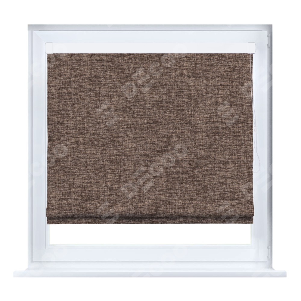 Римская штора производителя «Cortin», устанавливается на створку окна, пошита из ткани рогожка димаут коричневый, артикул 91018. Штора шьётся по индивидуальным размерам, для данного типа римской шторы возможная ширина от 35 до 150 см., высота до 250 см.