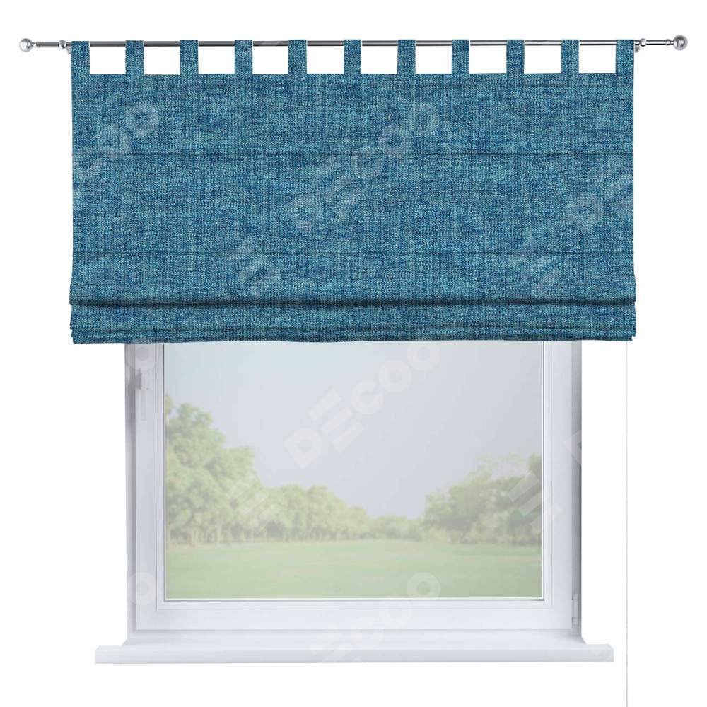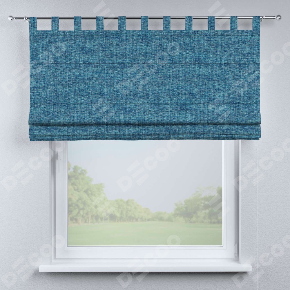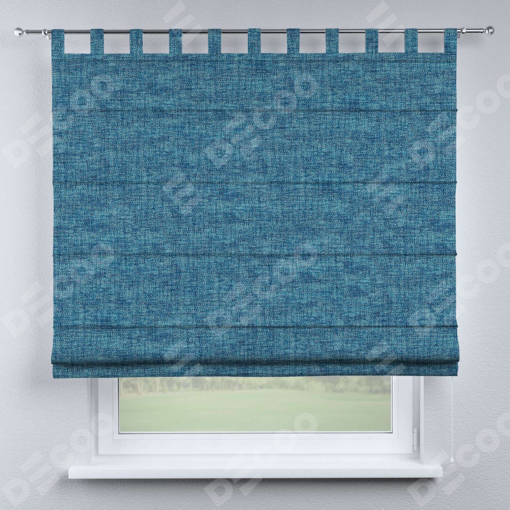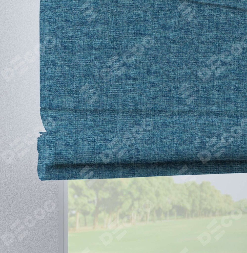 Римская штора «Кортин», рогожка димаут лазурно-синий, на петлях