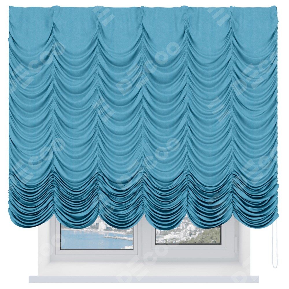Французская штора производителя «Cortin», используется для проёма, пошита из ткани вельвет ментоловый, артикул ткани 10443. Имеет универсальный механизм и подходит для монтажа: на потолок и на стену.