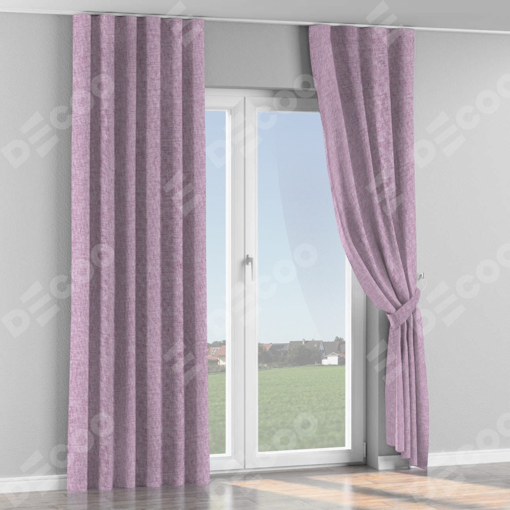 Комплект прямых штор, от производителя «Cortin», пошиты из ткани рогожка димаут розовый, артикул ткани 91031. С изнаночной стороны в верхней части штор пристрачивается шторная лента с декоративными складками «Волна». Для создания элегантных складок прямые шторы шьются по стандарту с коэффициентом 1:2 (на 100 см. ширины проёма 200 см. ширины ткани).