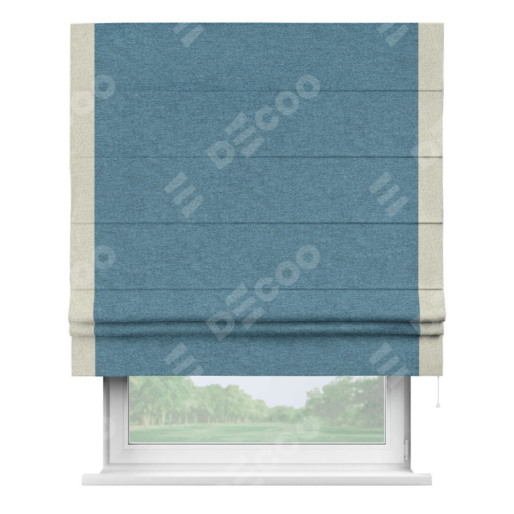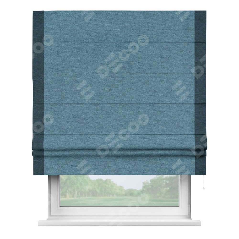 Римская штора «Кортин» с кантом Стрим Дуо, для проема, ткань твид блэкаут, светло-синий