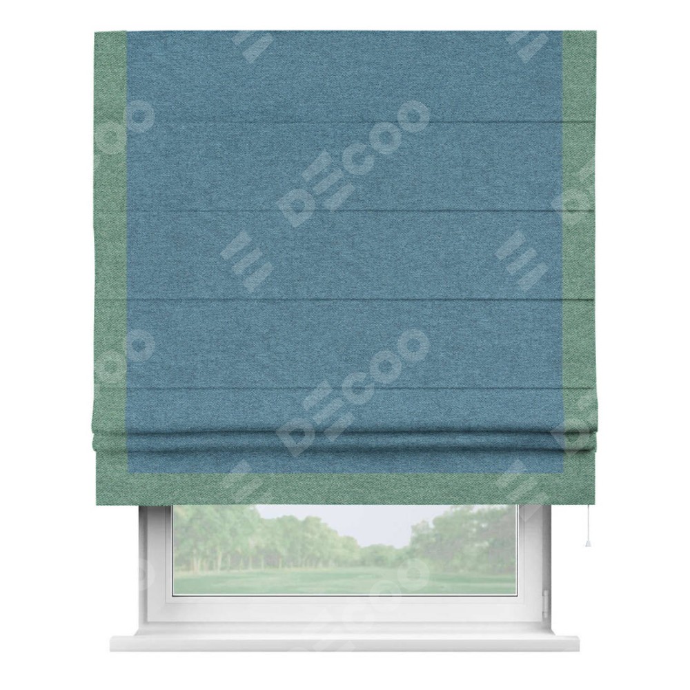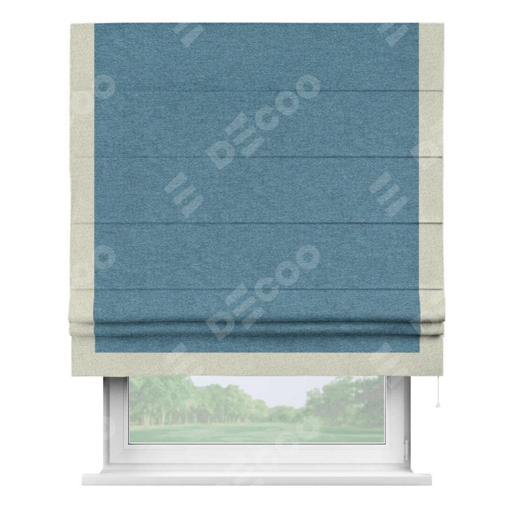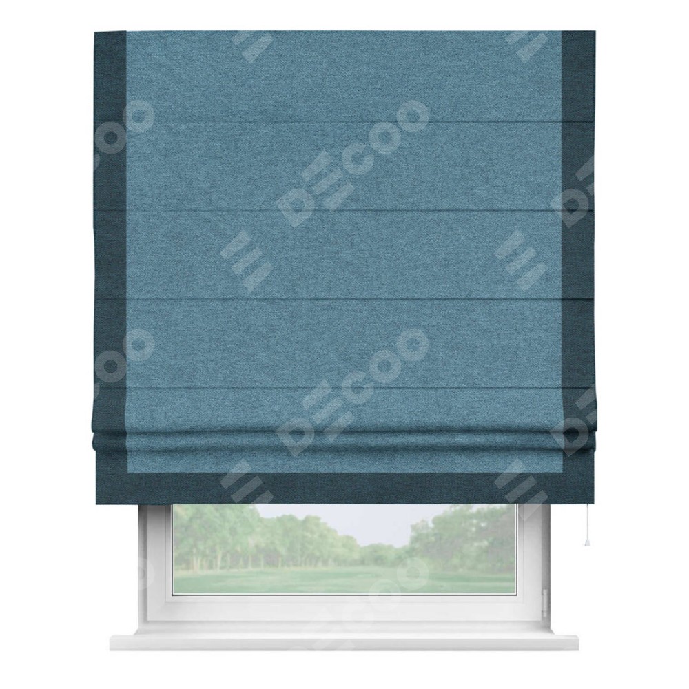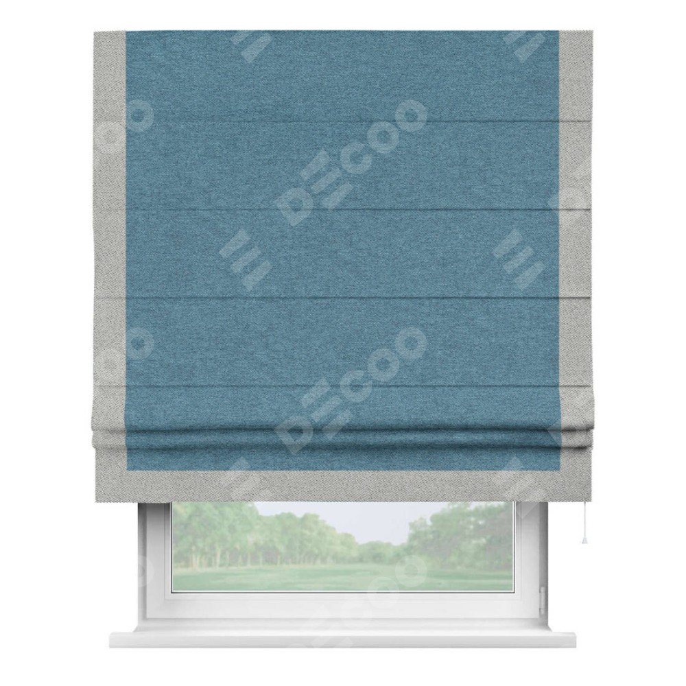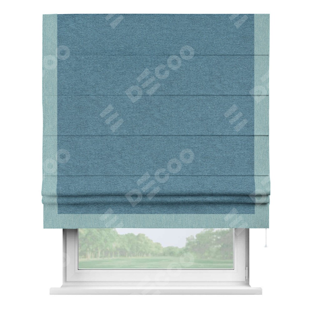 Римская штора «Кортин» с кантом Виктория, для проема, ткань твид блэкаут, светло-синий