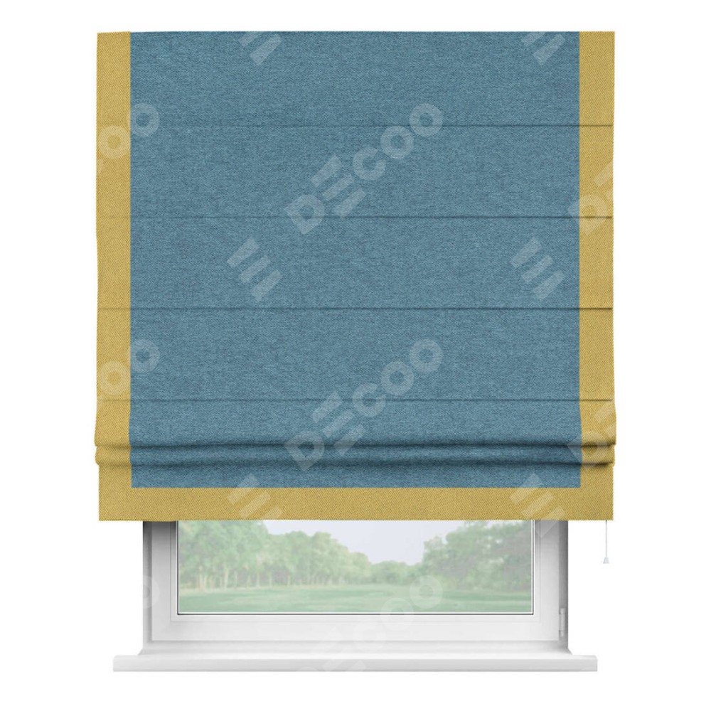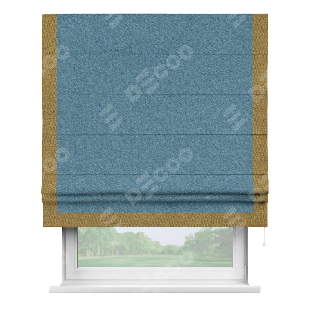 Римская штора с отделкой кантом «Виктория», пошита из ткани твид блэкаут светло-синий, артикул: 90935. представляет собой элегантное решение для оконного оформления. Кант по бокам и снизу шторы добавляет изысканности и аккуратности внешнему виду, подчеркивая линии и форму шторы. Этот элемент декора не только украшает, но и выполняет практическую функцию, защищая края ткани от износа. Кант может быть выполнен в контрастном или гармонирующем цвете, что позволяет добиться различных стилевых эффектов и легко вписать штору в интерьер комнаты.