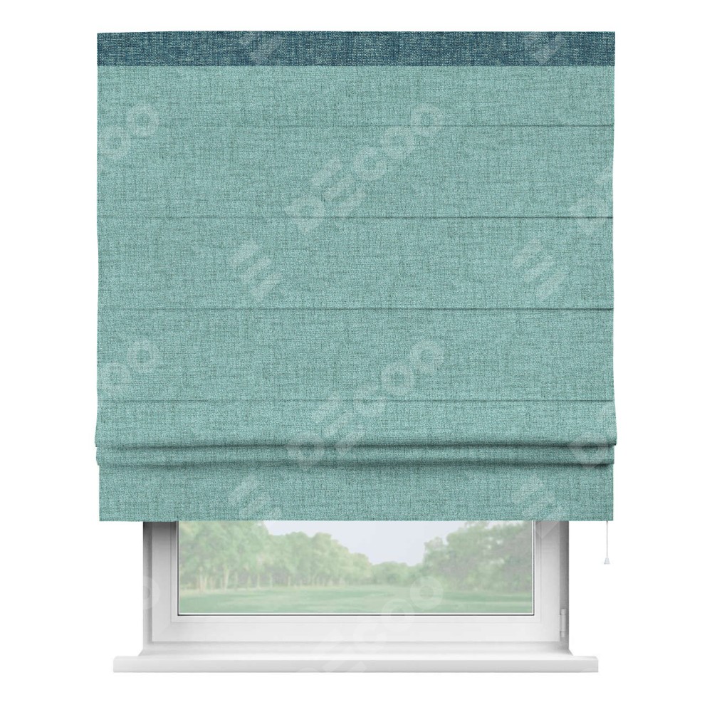 Римская штора «Кортин» для проёма, рогожка димаут аквамариновый крайола, с кантом Кинг