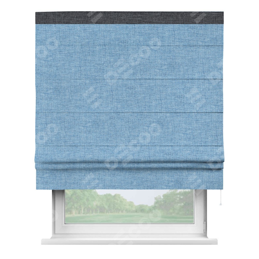 Римская штора «Кортин» для проёма, рогожка димаут голубой, с кантом Кинг