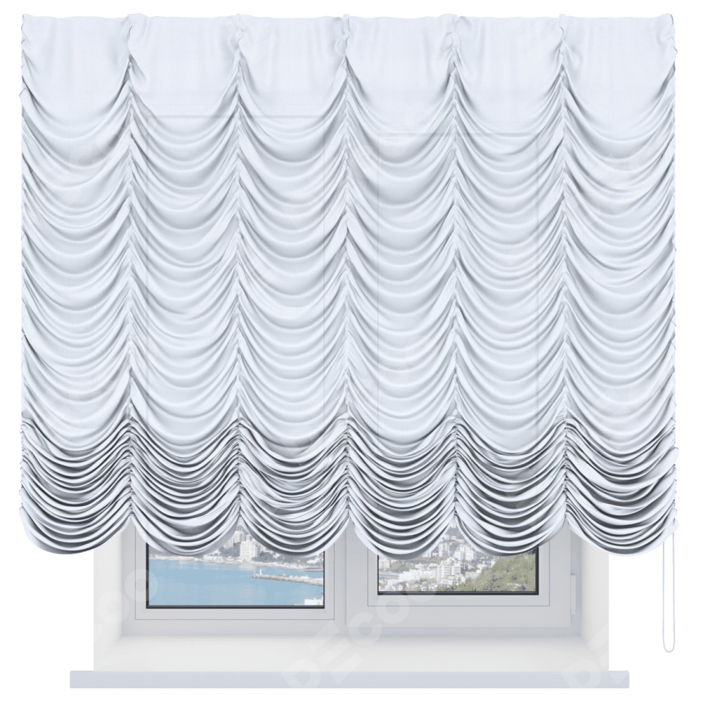 Французская штора производителя «Cortin», используется для проёма, пошита из ткани лён белый, артикул ткани 53430. Имеет универсальный механизм и подходит для монтажа: на потолок и на стену.