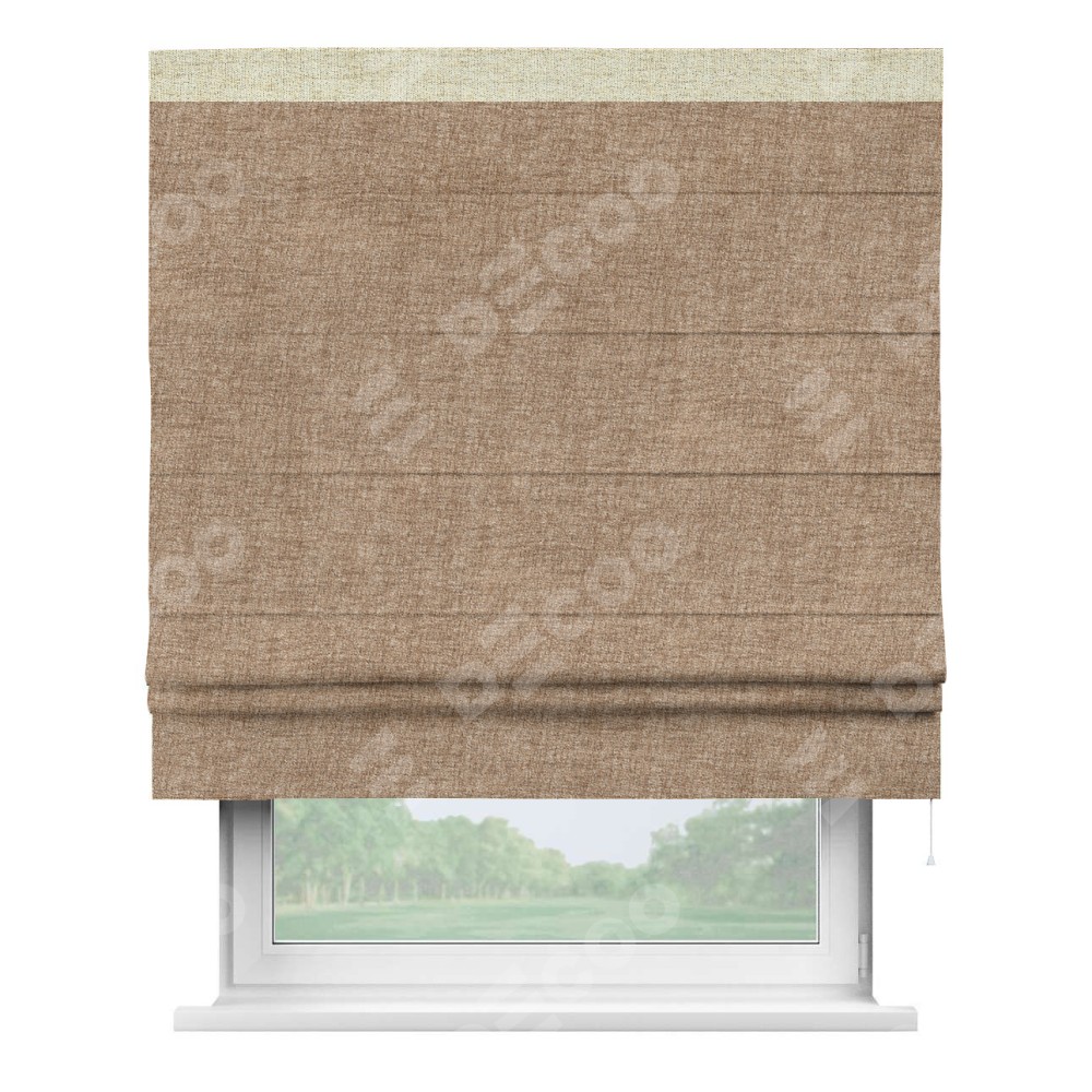 Римская штора «Кортин» для проёма, рогожка димаут светло-коричневый, с кантом Кинг