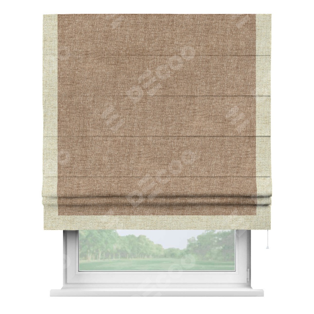 Римская штора «Кортин» для проёма, рогожка димаут светло-коричневый, с кантом Виктория