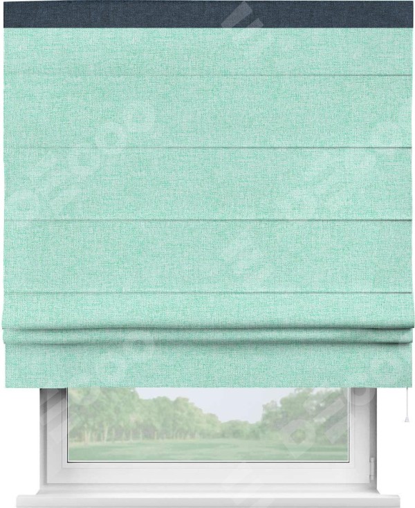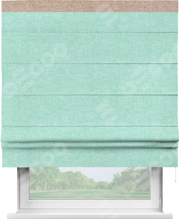 Римская штора «Кортин» для проёма, лён кашемир мятный, с кантом Кинг