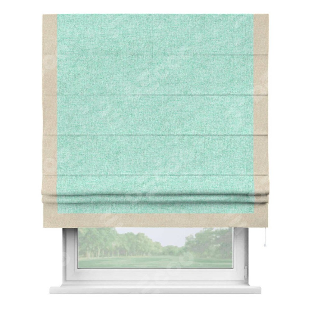 Римская штора «Кортин» для проёма, лён кашемир мятный, с кантом Виктория