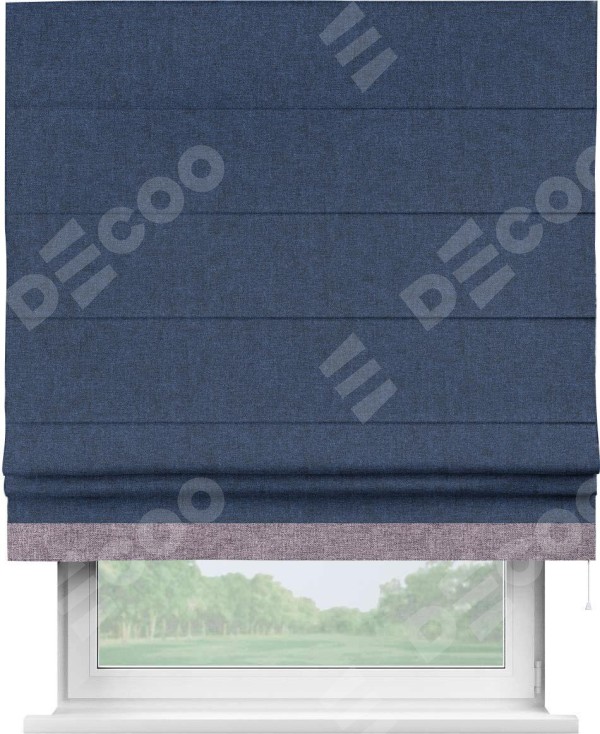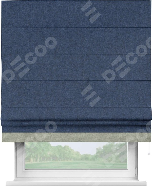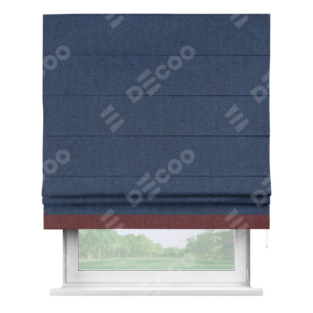 Римская штора «Кортин» для проёма, лён кашемир тёмно-синий, с кантом Джестер