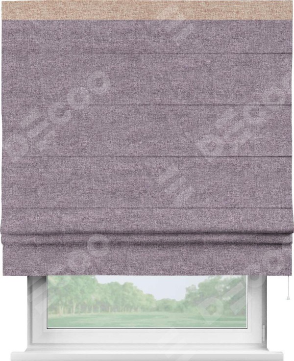 Римская штора «Кортин» для проёма, лён кашемир фиолетовый, с кантом Кинг