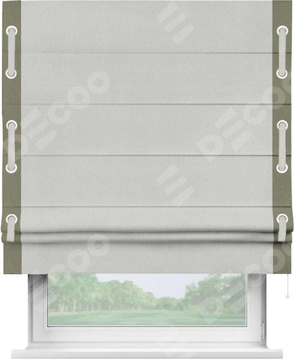 Римская штора «Кортин» с кантом Стрим Дуо (люверсы с пояском), для проема, ткань блэкаут однотонный милк