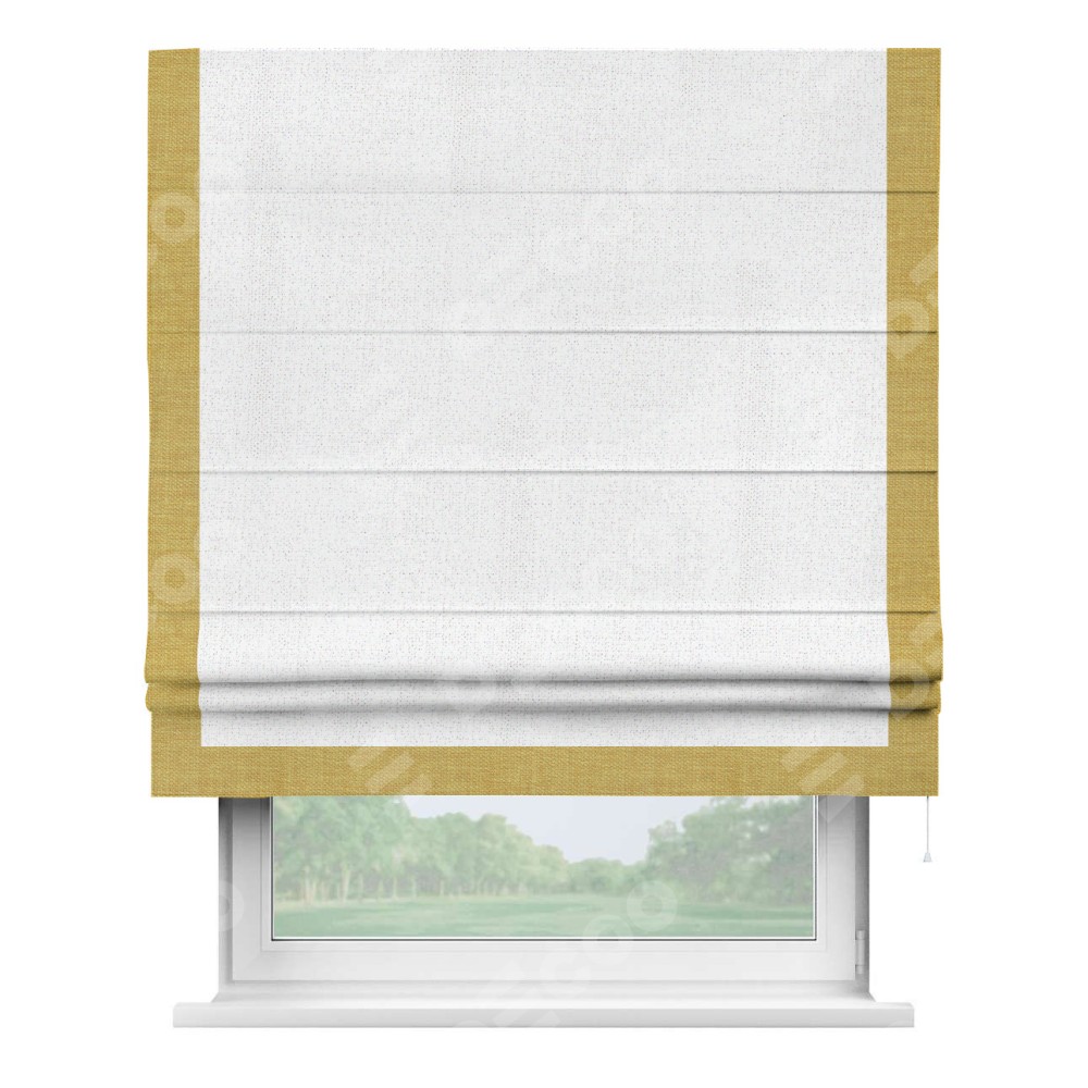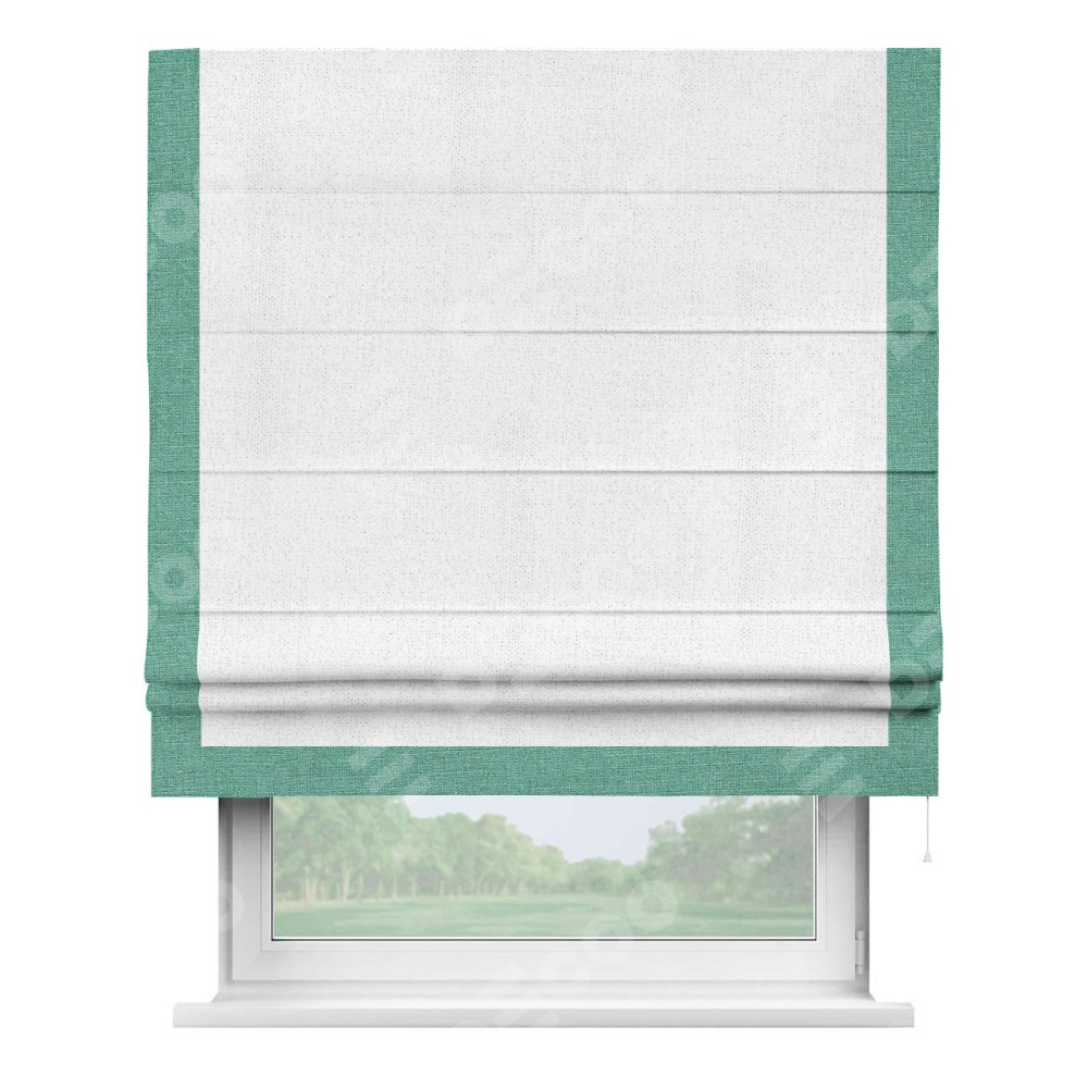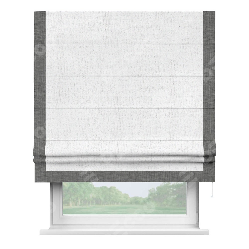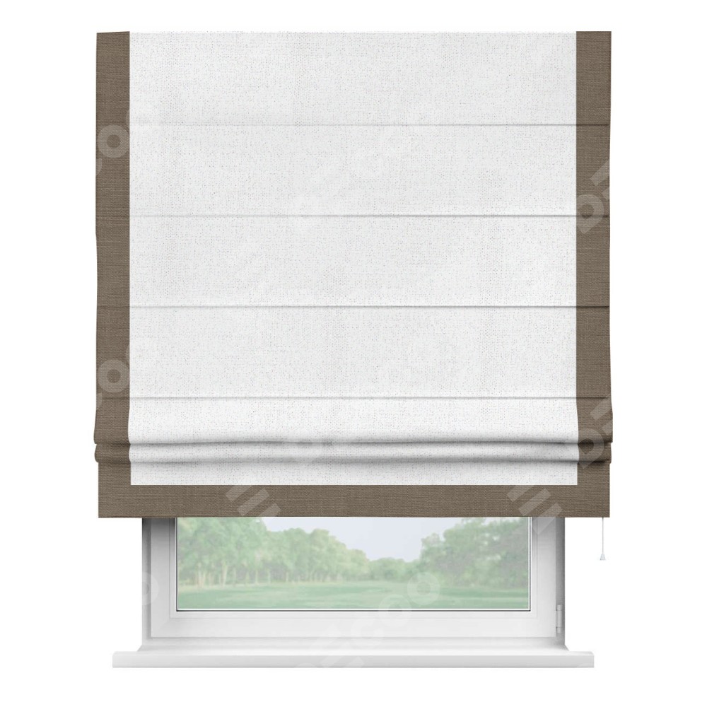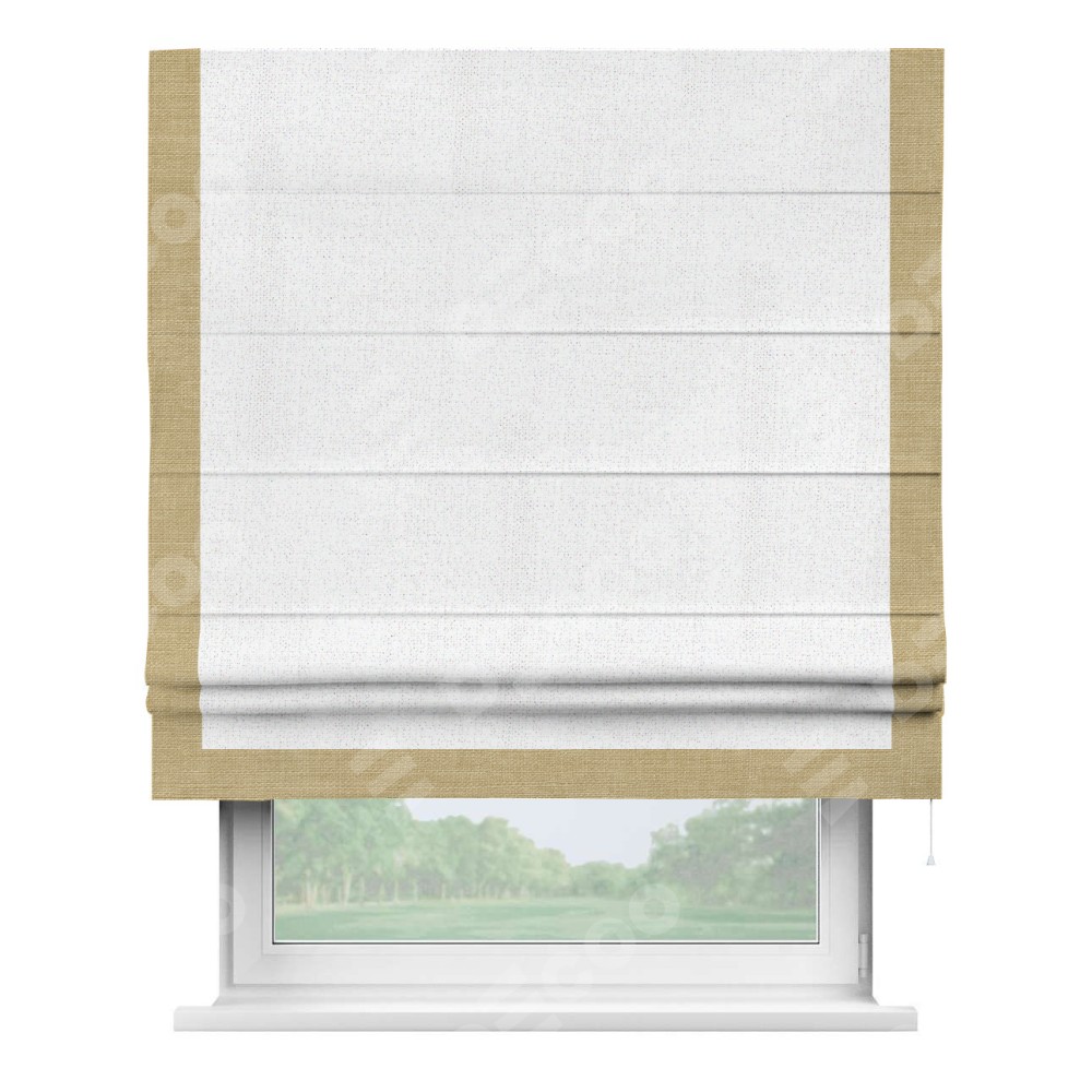 Римская штора «Кортин» для проема, лён белоснежный, с кантом Виктория