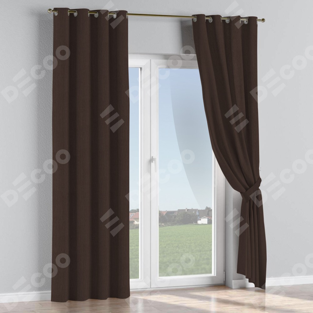 Комплект прямых штор, от производителя «Cortin», пошиты из ткани лён димаут венге, артикул ткани 91001. Данная модель пошита на люверсах, комплектуется на выбор круглым карнизом и подходит для монтажа на стену или потолок. Прямые шторы на люверсах шьются по стандарту с коэффициентом 1/2 (на 100 см. ширины проёма 200 см. ширины ткани), отличительным преимуществом данной модели является простой способ монтажа. Достаточно повесить ее на трубу и штора готова!