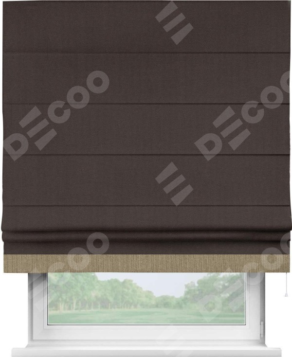 Римская штора «Кортин» для проема, лён димаут венге с кантом Джестер