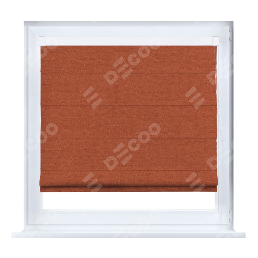 Римская штора производителя «Cortin», устанавливается на створку окна, пошита из ткани канвас терракотовый, артикул v-107. Штора шьётся по индивидуальным размерам, для данного типа римской шторы возможная ширина от 35 до 150 см., высота до 250 см.