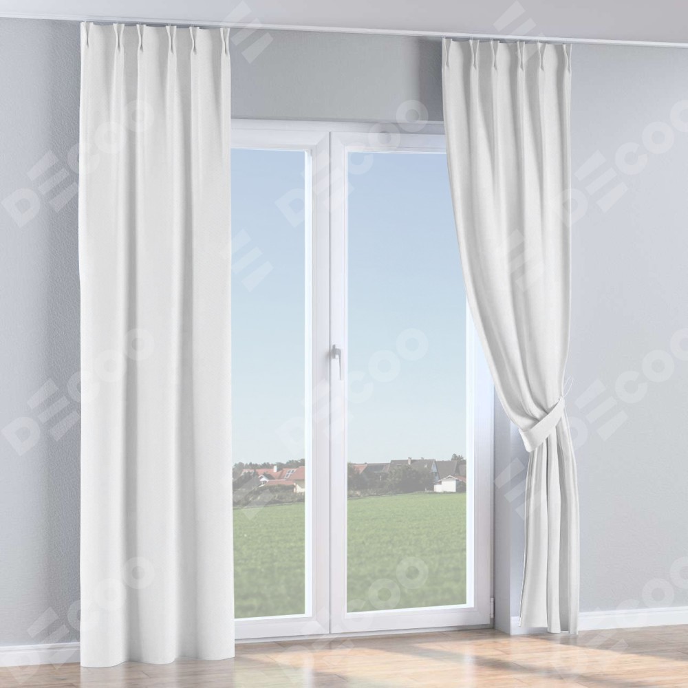 Комплект прямых штор, от производителя «Cortin», пошиты из ткани лён димаут белый, артикул ткани 28. С изнаночной стороны в верхней части штор пристрачивается шторная лента с декоративными складками «Кустик». Для создания элегантных складок рекомендуемый коэффициент 1:2 (на 100 см. ширины проёма 200 см. ширины ткани). Важно! Ширина штор указана без учёта коэффициента сборки!
