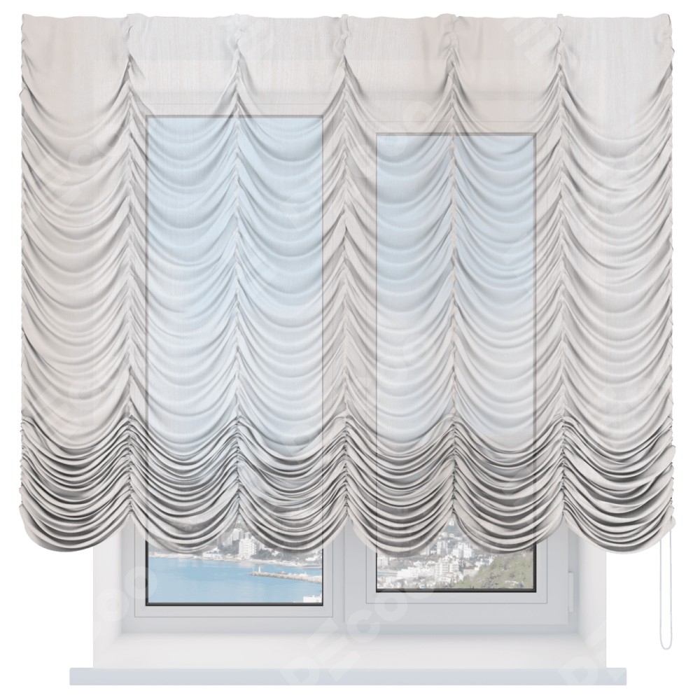 Французская штора производителя «Cortin», используется для проёма, пошита из ткани тюль шампань, артикул ткани V-02. Имеет универсальный механизм и подходит для монтажа: на потолок и на стену.