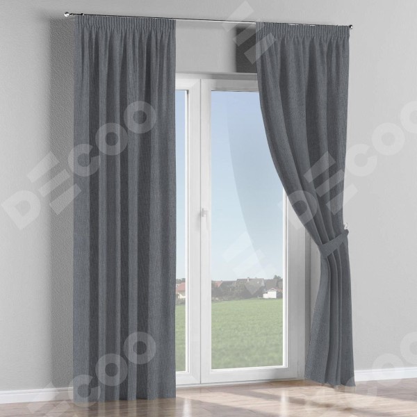 Комплект штор на тесьме «Карандаш», лён блэкаут тёмно-серый