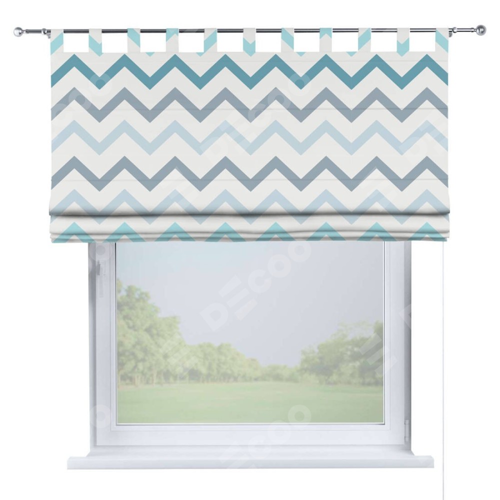 Римская штора производителя «Cortin», используется для проёма, пошита из ткани блэкаут с нанесением сублимационной печати «Небесный шеврон». Данная модель пошита на петлях, комплектуется на выбор круглым карнизом и подходит для монтажа на стену. Римская штора на петлях имеет простую систему регулировки высоты, отличительным преимуществом данной модели является простой способ монтажа. Достаточно повесить ее на трубу и штора готова!