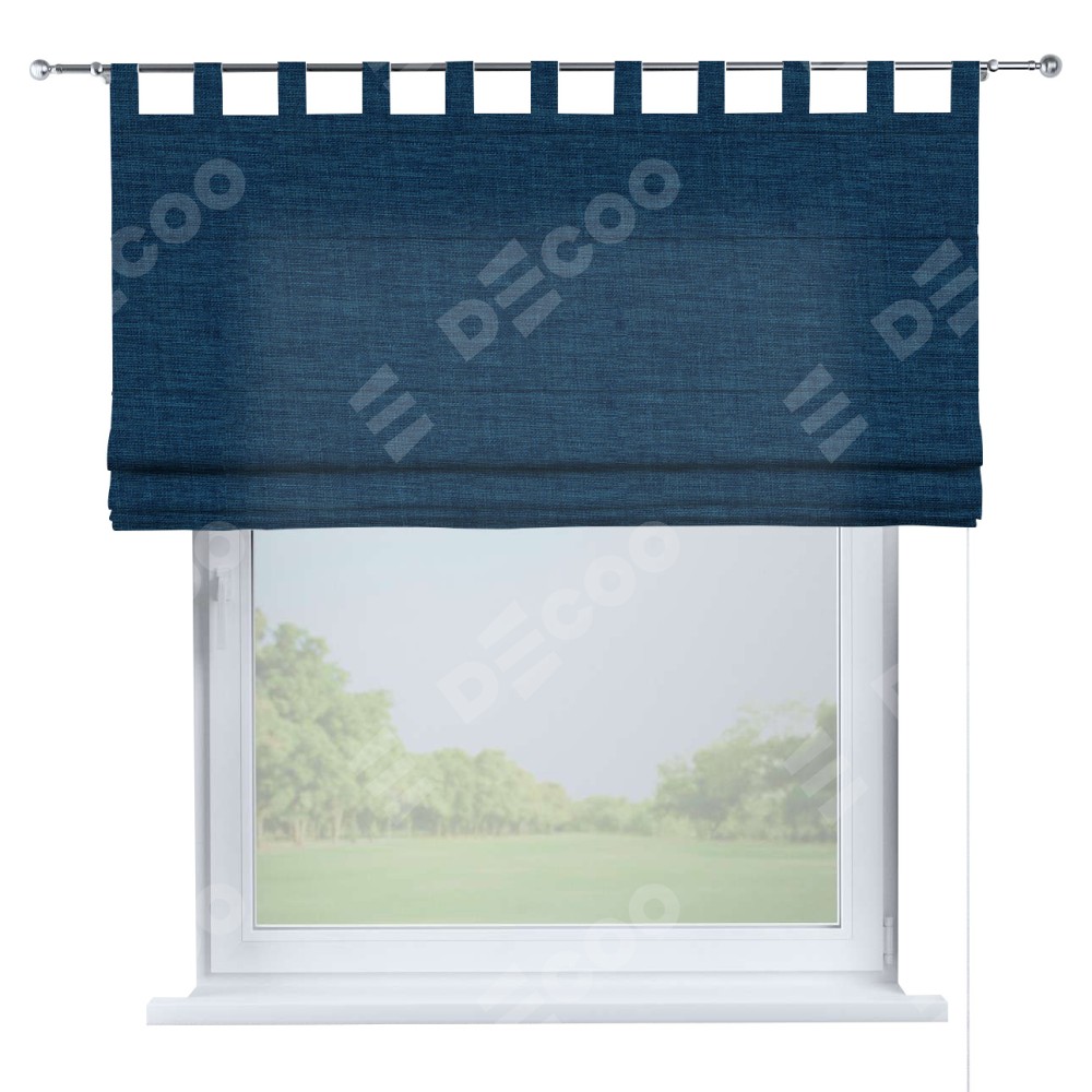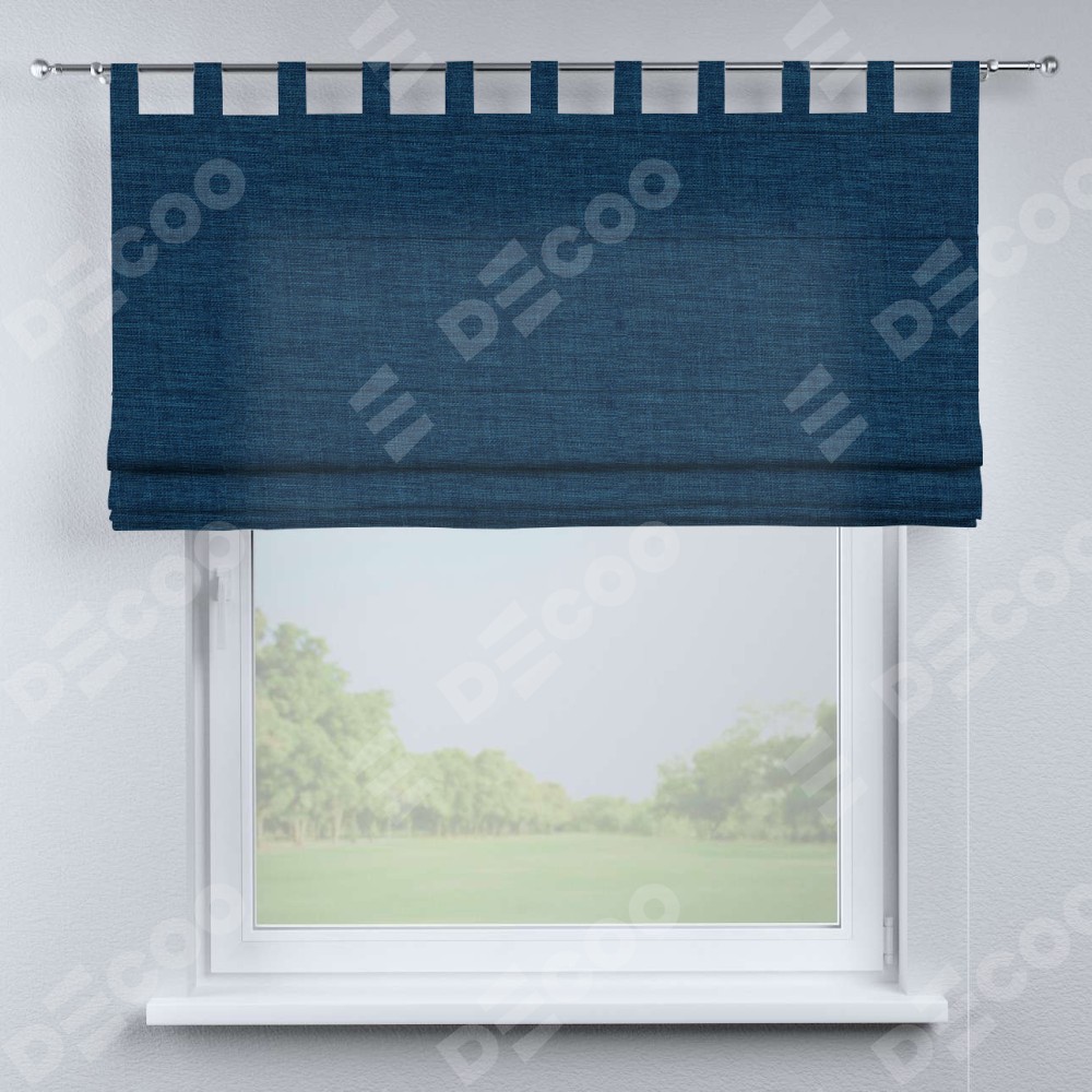 Римская штора «Кортин», лён синий, на петлях