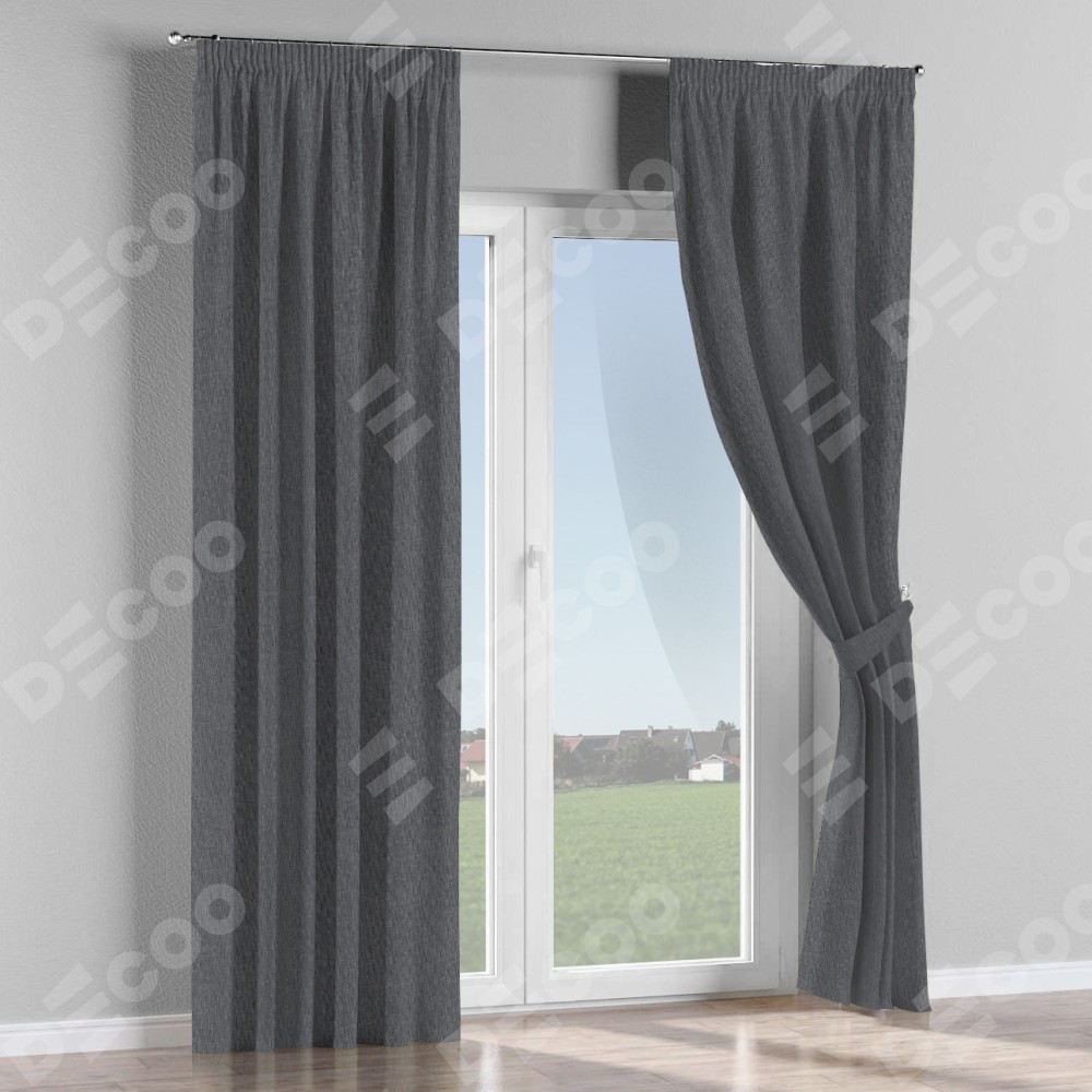 Комплект прямых штор, от производителя «Cortin», пошиты из ткани лён димаут графит, артикул ткани 140644. С изнаночной стороны в верхней части штор пристрачивается шторная лента с декоративными складками «Карандаш». Для создания элегантных складок рекомендуемый коэффициент 1:2 (на 100 см. ширины проёма 200 см. ширины ткани). Важно! Ширина штор указана без учёта коэффициента сборки!