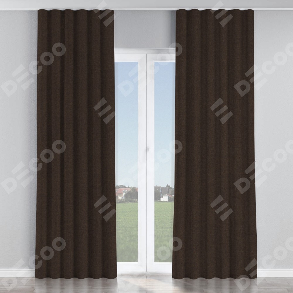 Комплект прямых штор, от производителя «Cortin», пошиты из ткани лён тёмно-коричневый, артикул ткани 104497. С изнаночной стороны в верхней части штор пристрачивается шторная лента с декоративными складками «Волна». Для создания элегантных складок рекомендуемый коэффициент 1:2 (на 100 см. ширины проёма 200 см. ширины ткани). Важно! Ширина штор указана без учёта коэффициента сборки!