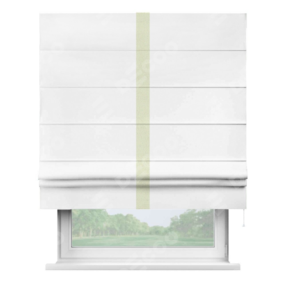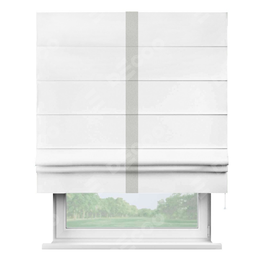 Римская штора «Кортин» для проёма, вайтаут однотонная белая с кантом Хайвэй