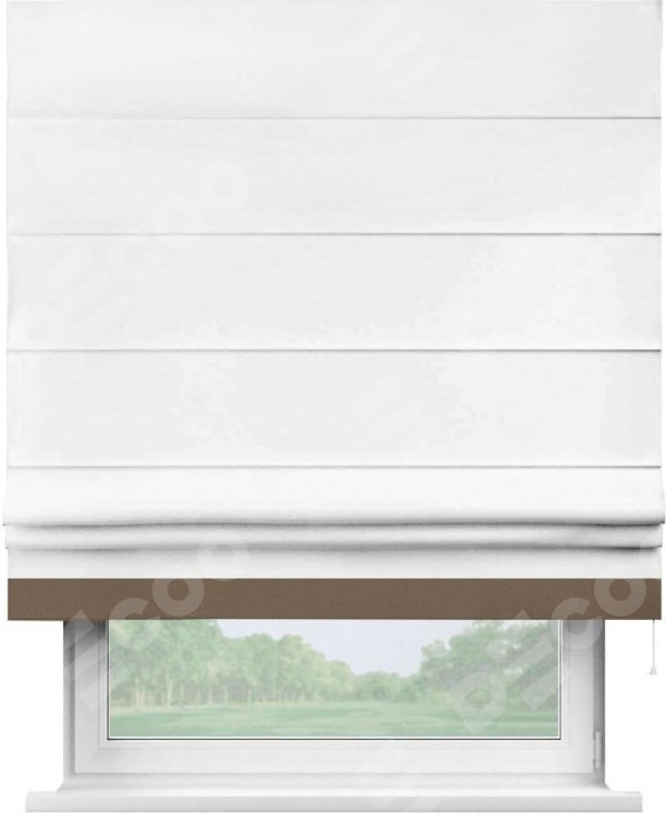 Римская штора «Кортин» для проёма, вайтаут однотонная белая с кантом Джестер