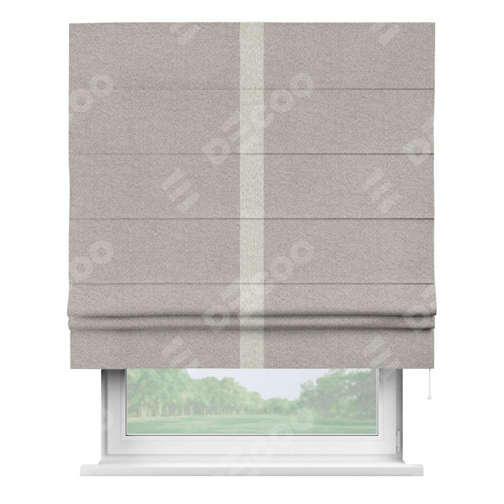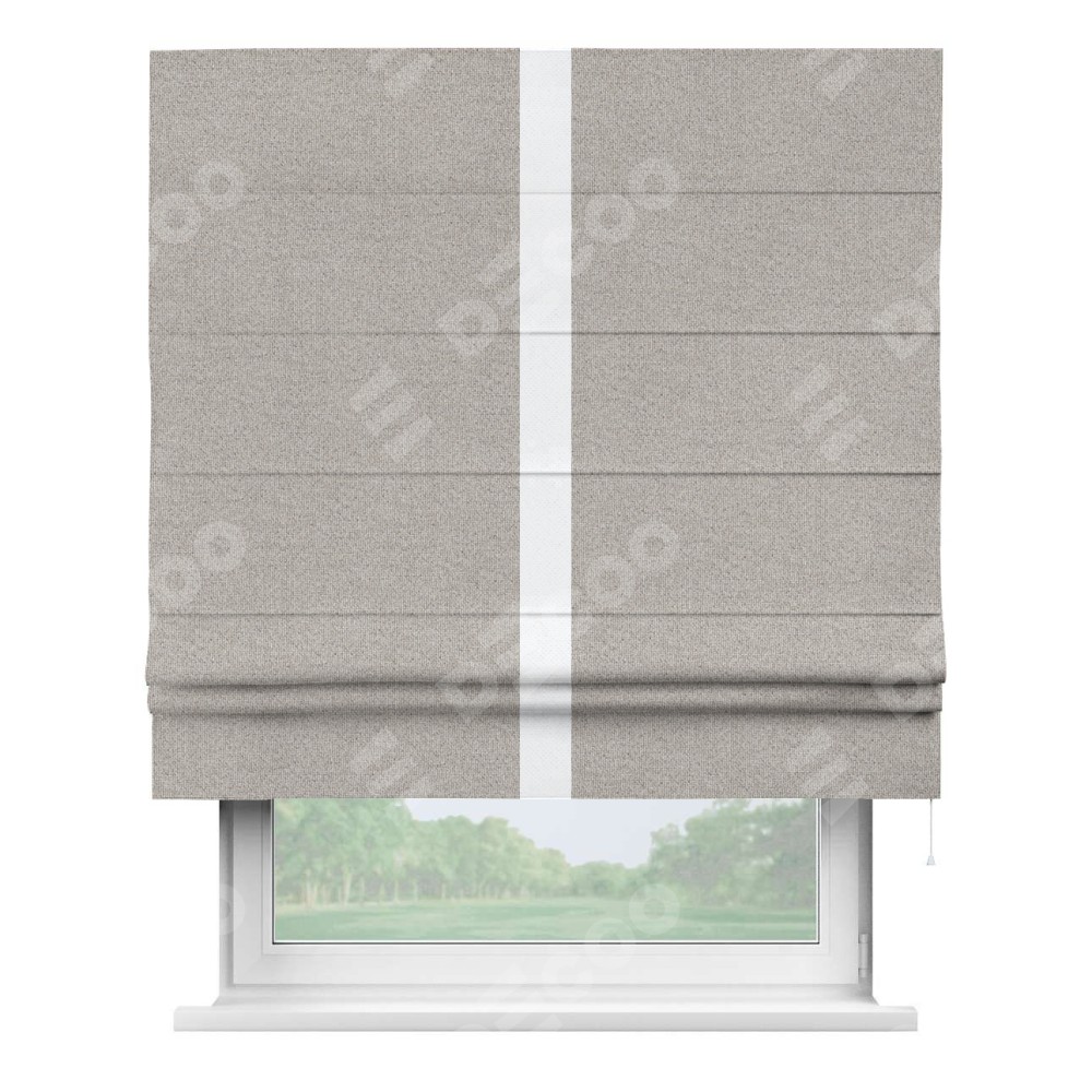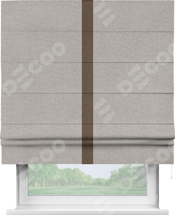 Римская штора «Кортин» для проема, лён димаут серо-бежевый с кантом Хайвэй