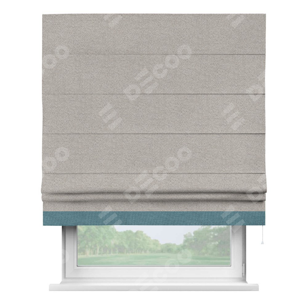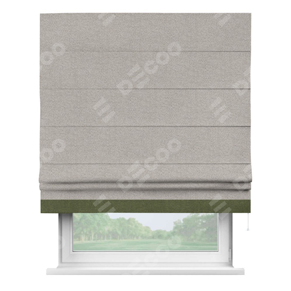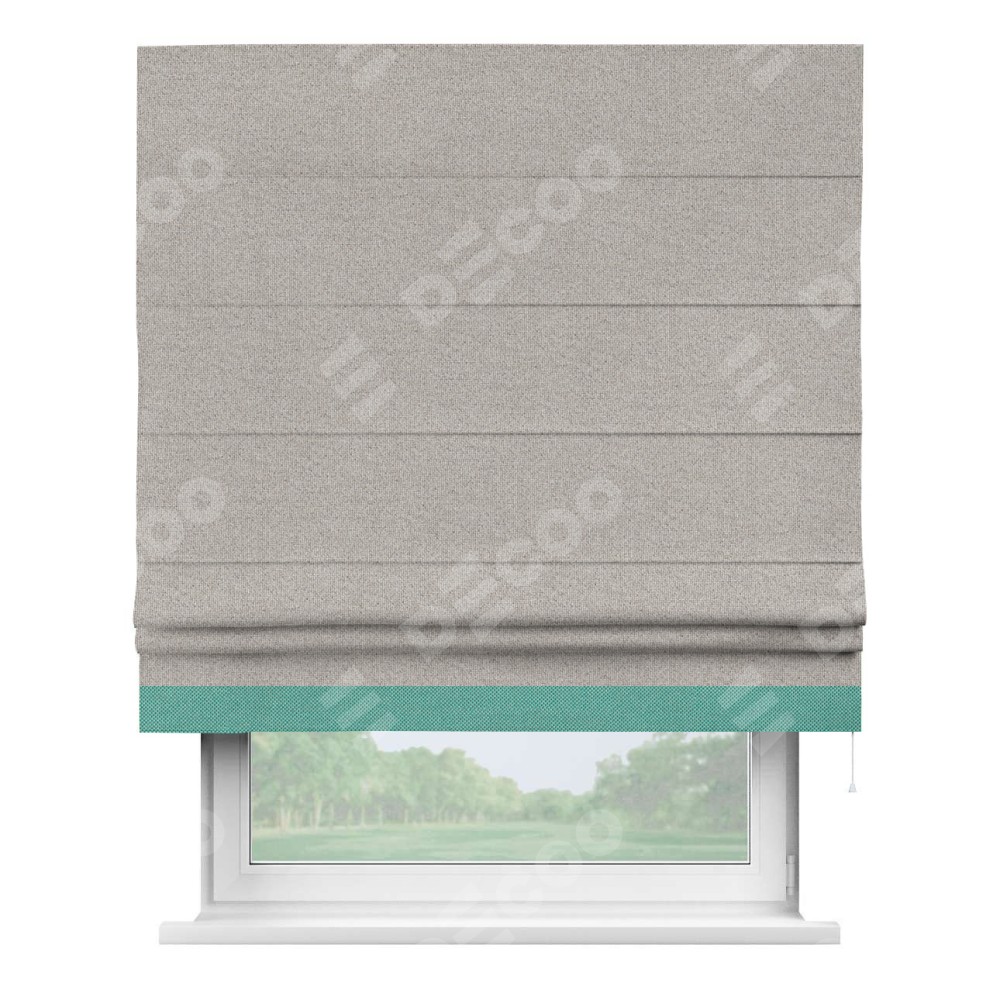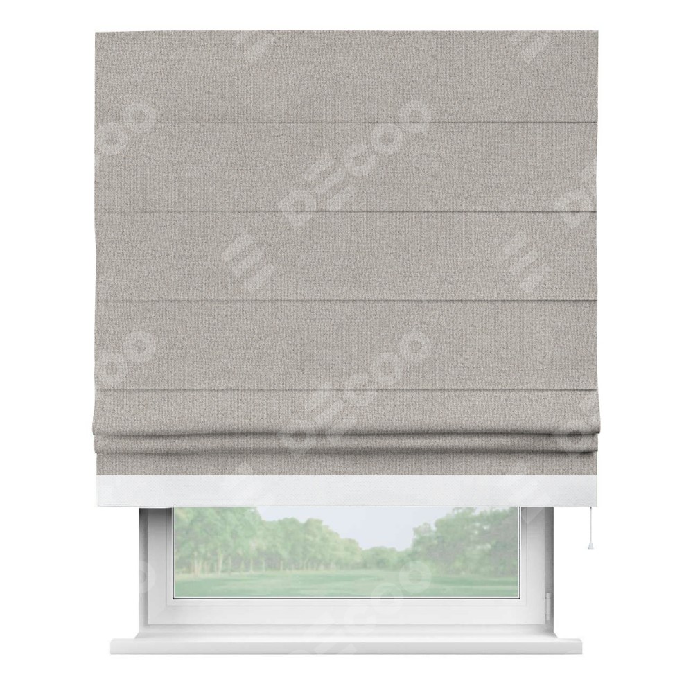 Римская штора «Кортин» для проема, лён димаут серо-бежевый с кантом Джестер