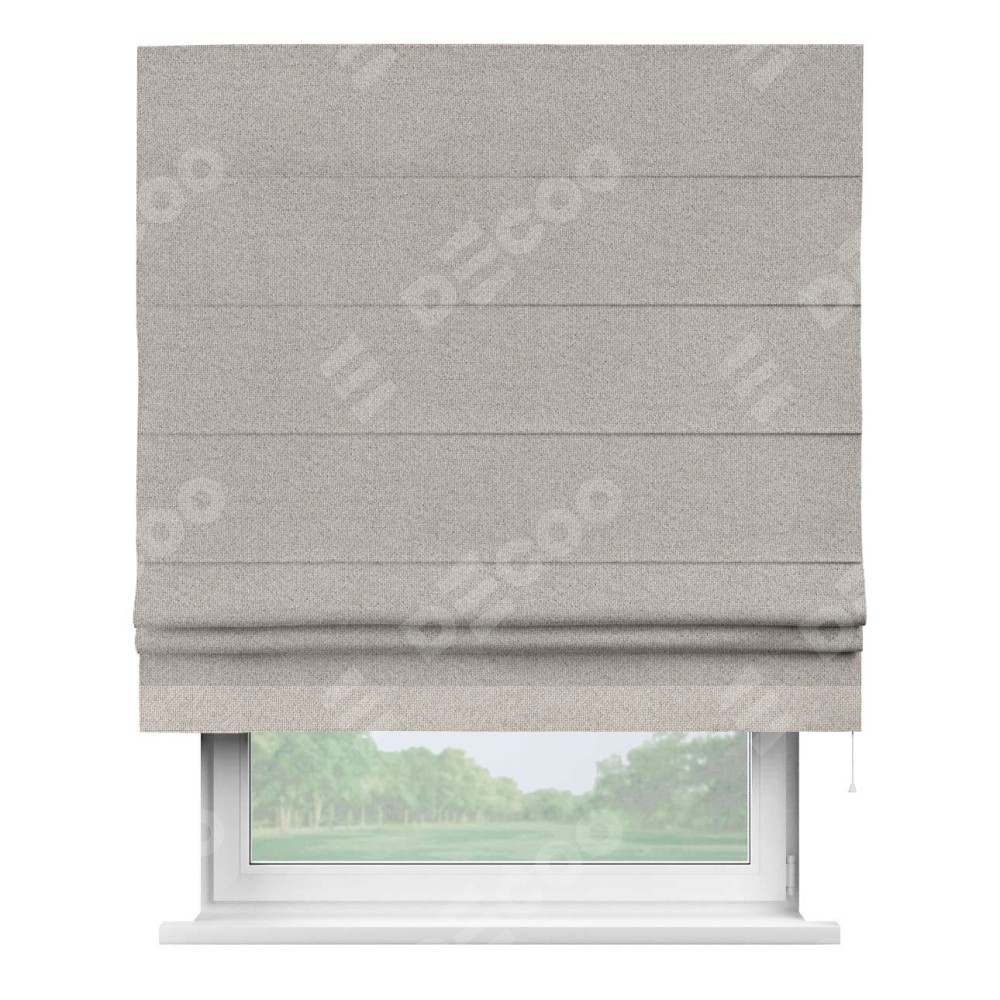 Классическая римская штора производителя «Cortin», пошита из ткани лён димаут серо-бежевый, артикул: 17. Имеет универсальный механизм и подходит для монтажа: на потолок, на стену и в нишу.