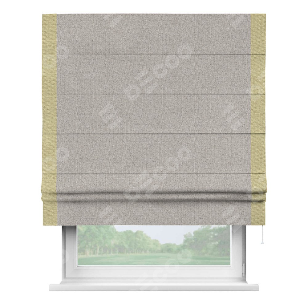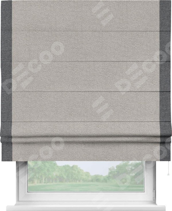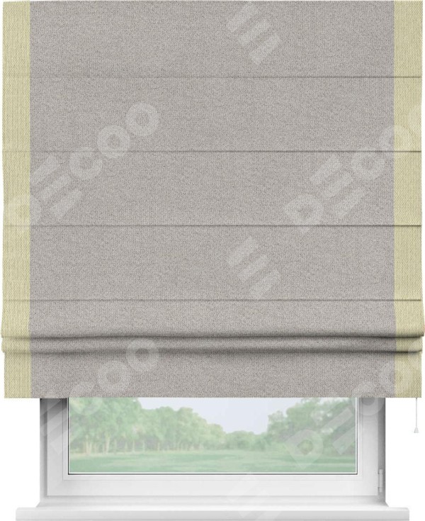 Римская штора «Кортин» для проема, лён димаут серо-бежевый с кантом Стрим Дуо