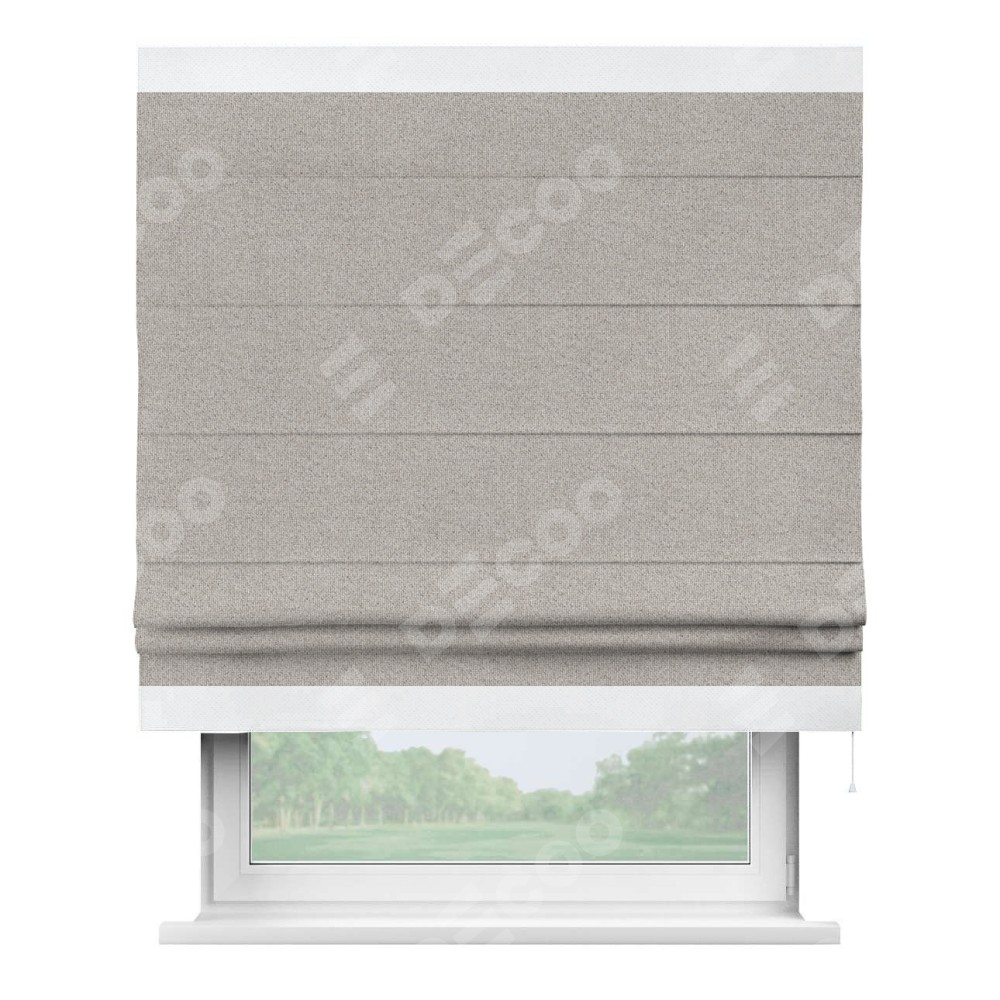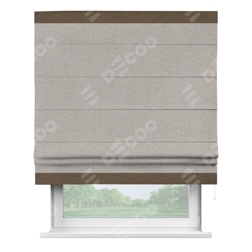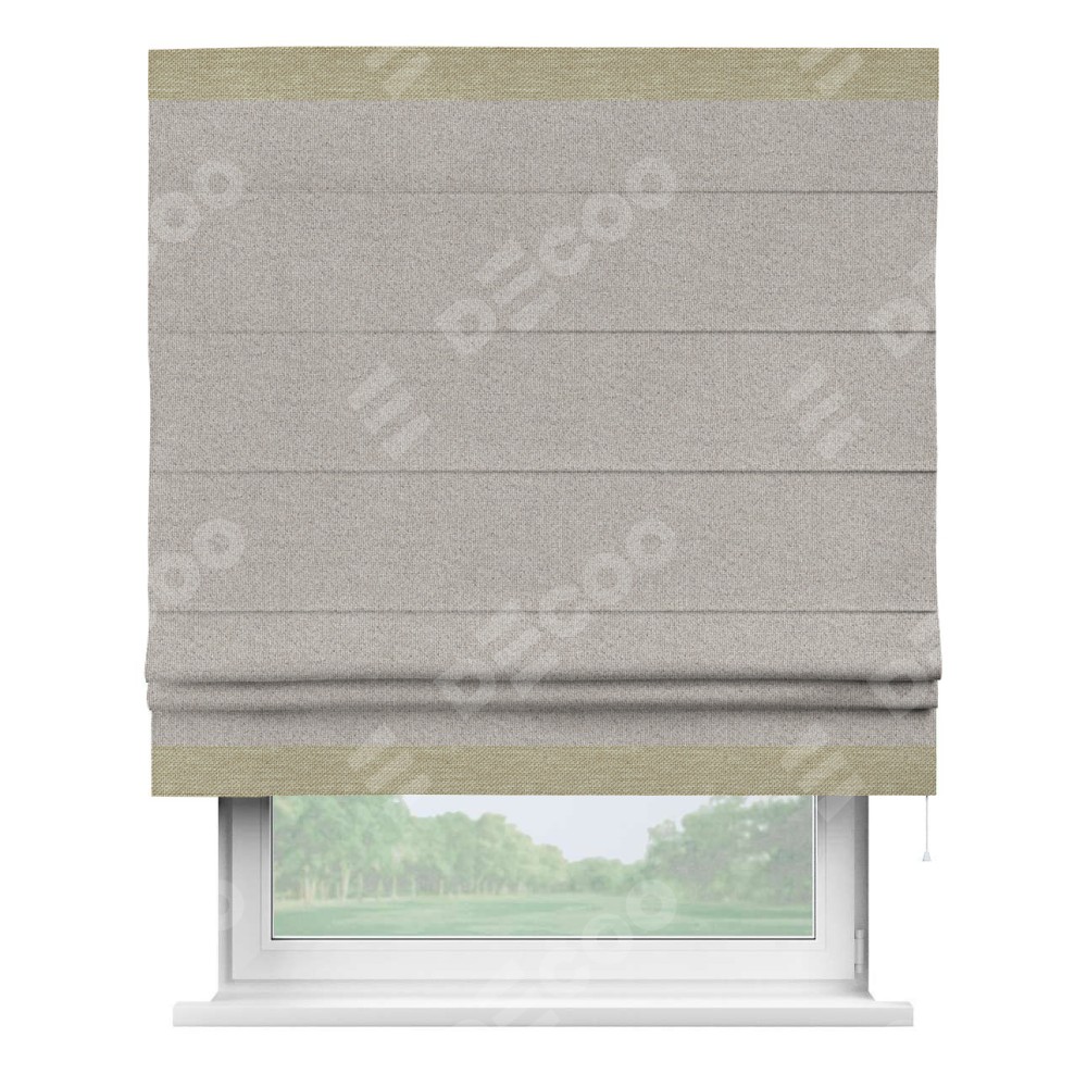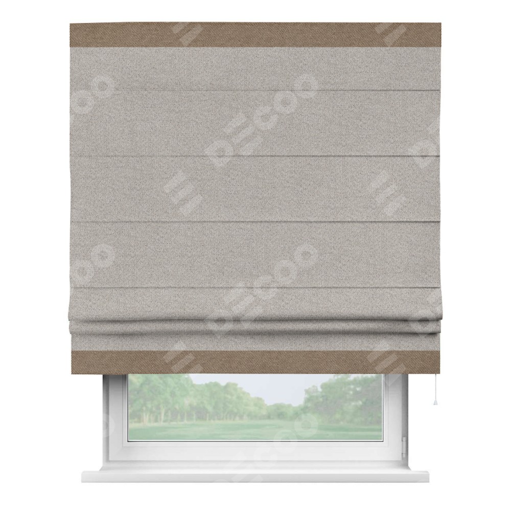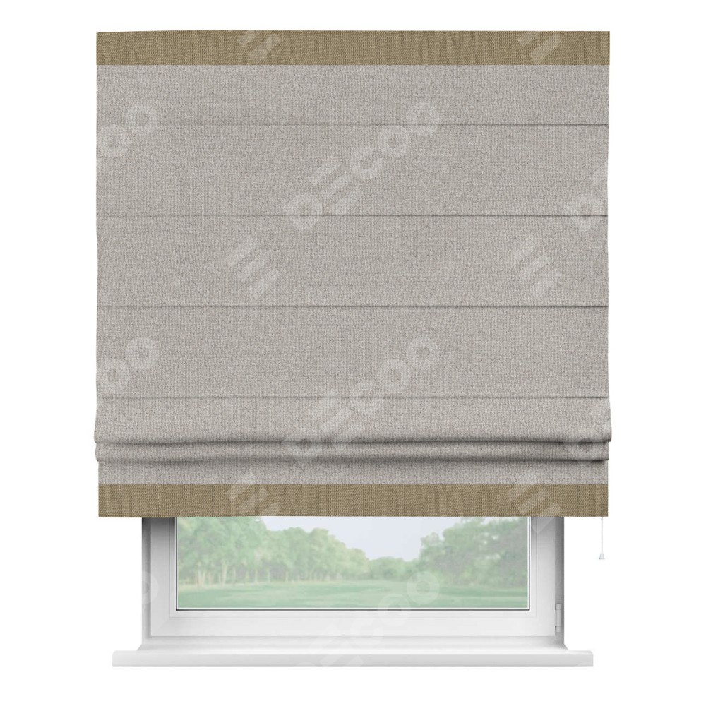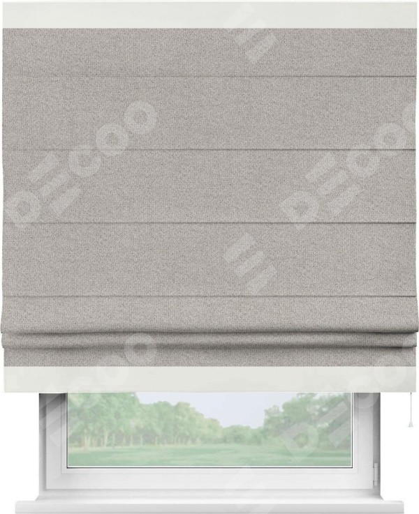 Римская штора «Кортин» для проема, лён димаут серо-бежевый с кантом Горизонт