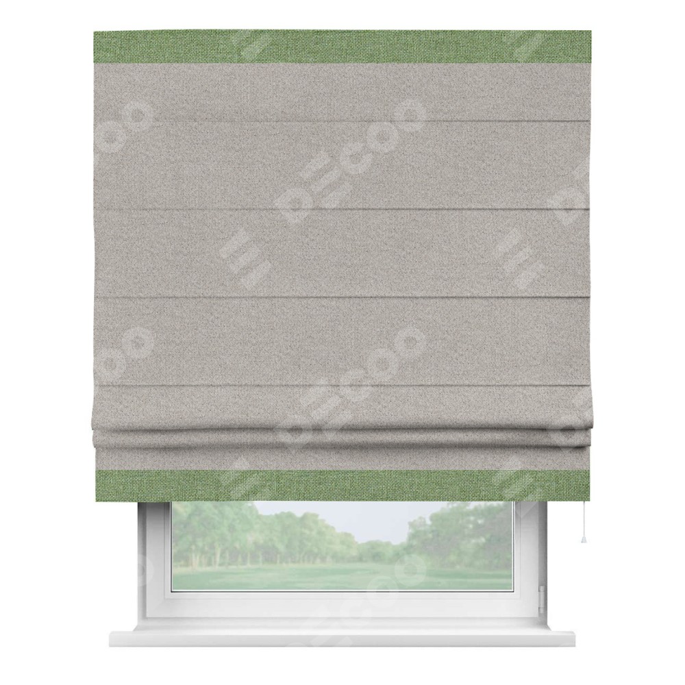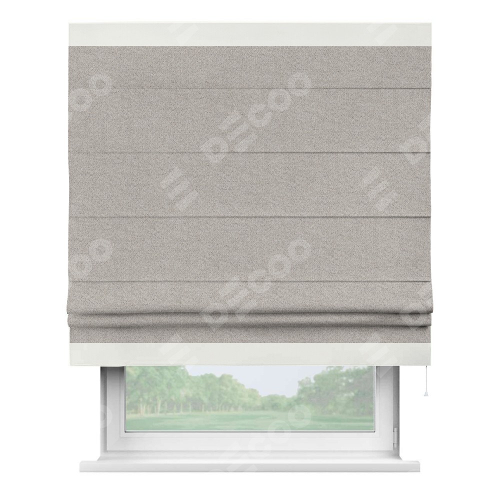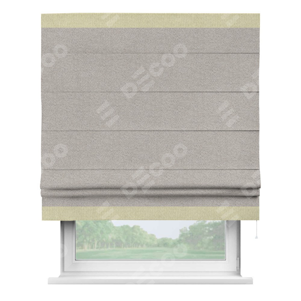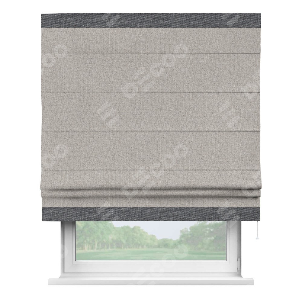 Римская штора «Кортин» для проема, лён димаут серо-бежевый с кантом Горизонт