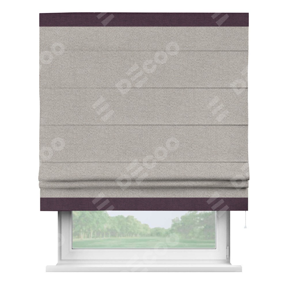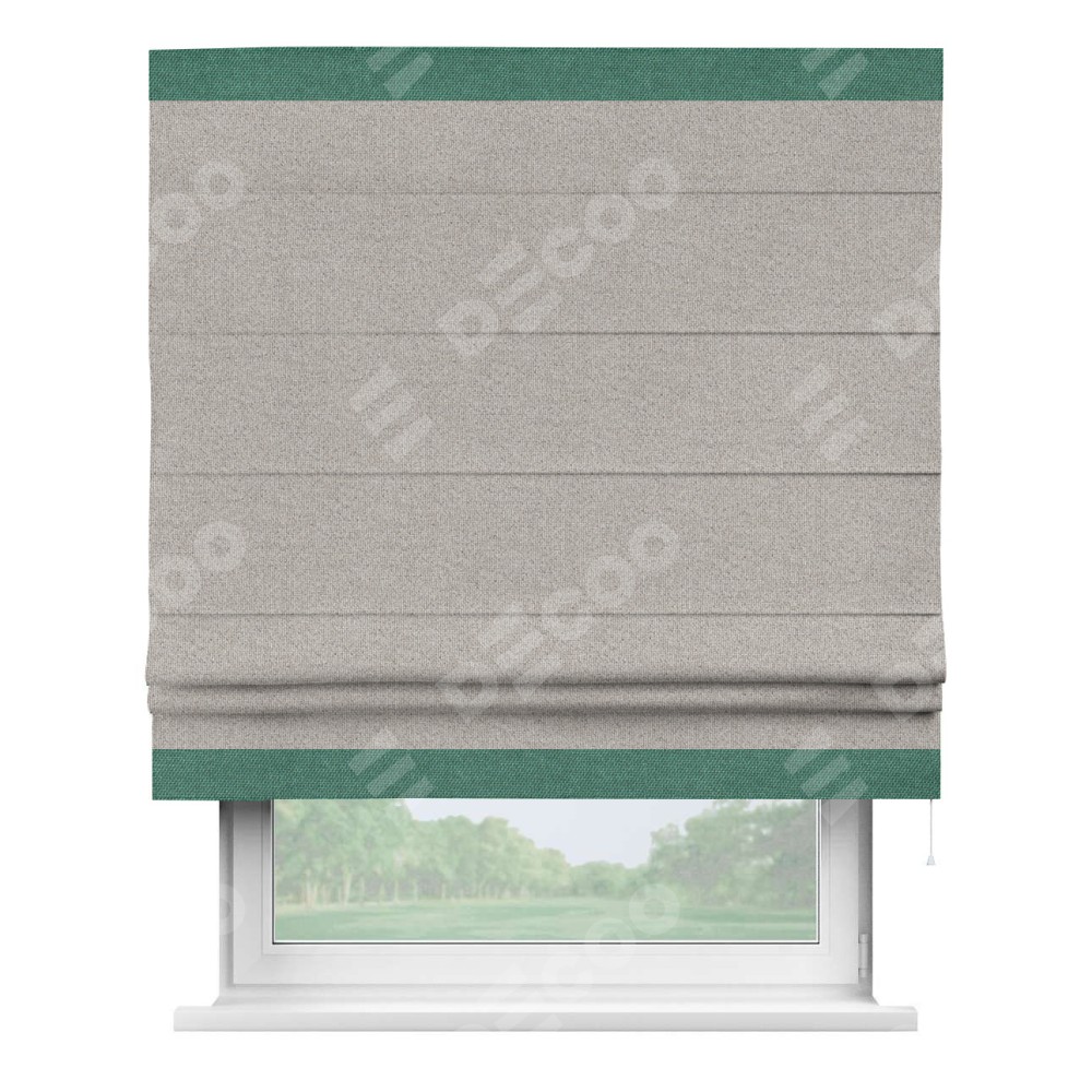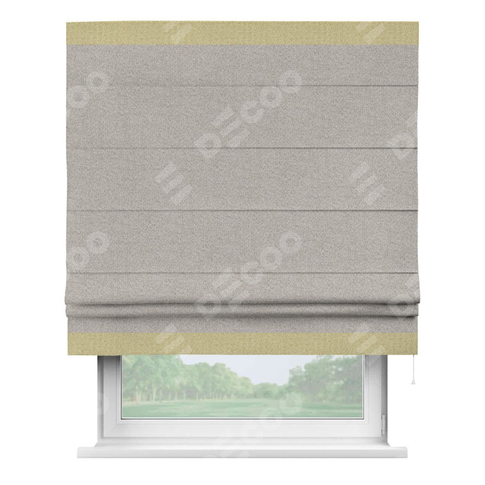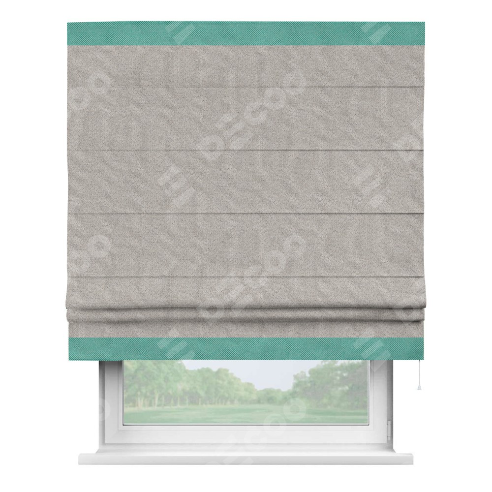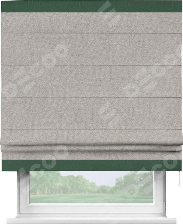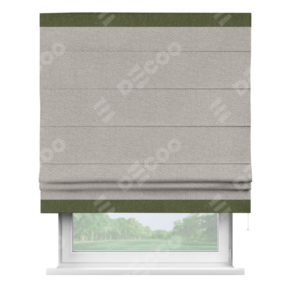 Римская штора «Кортин» для проема, лён димаут серо-бежевый с кантом Горизонт