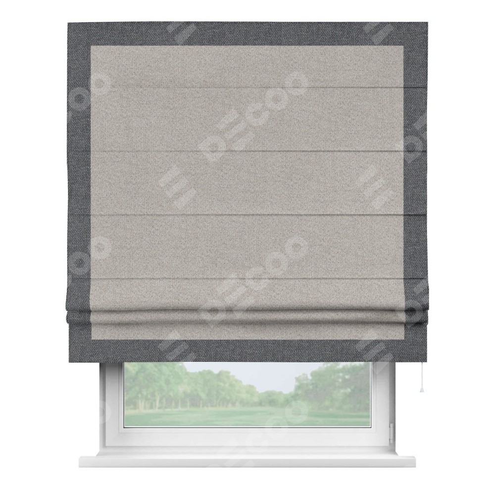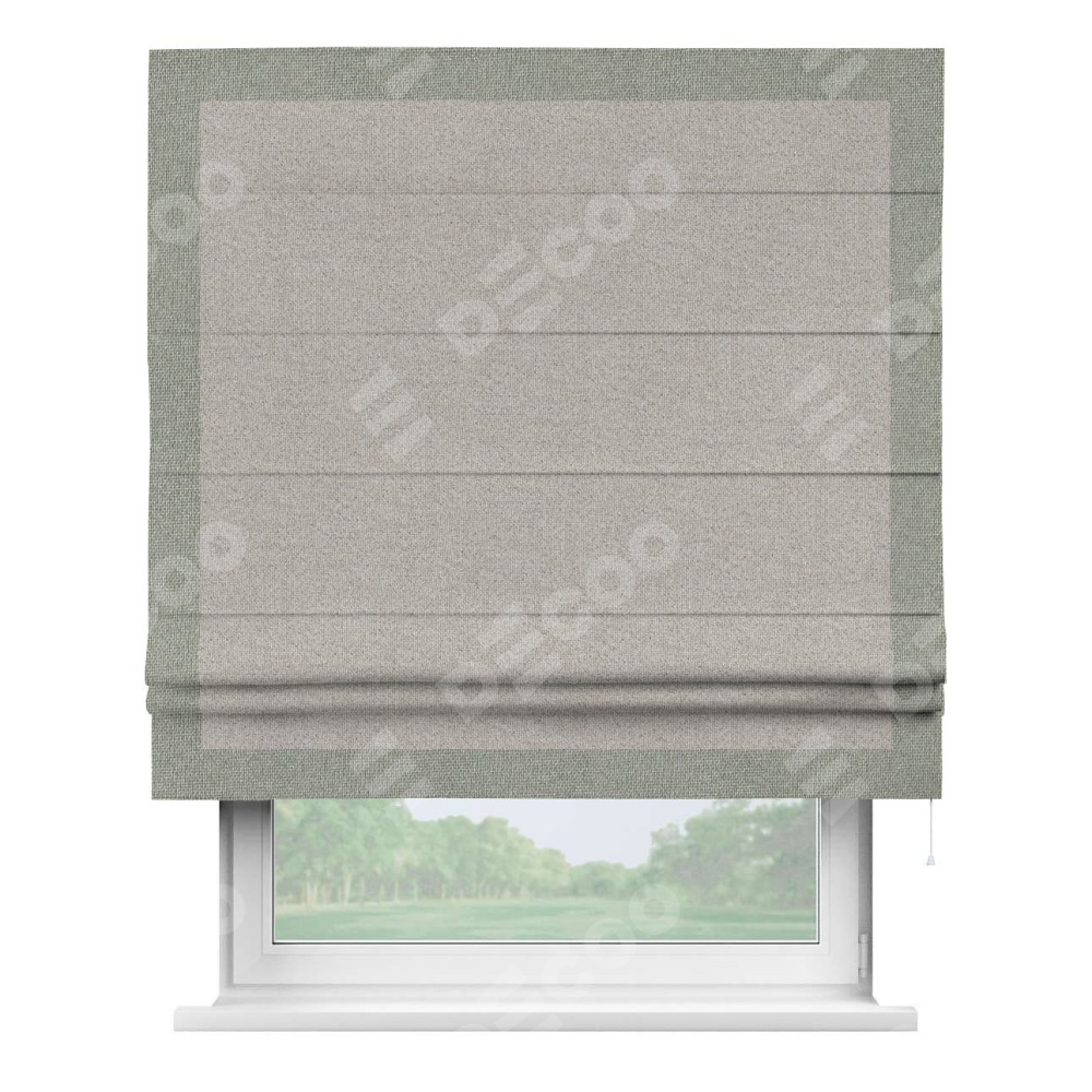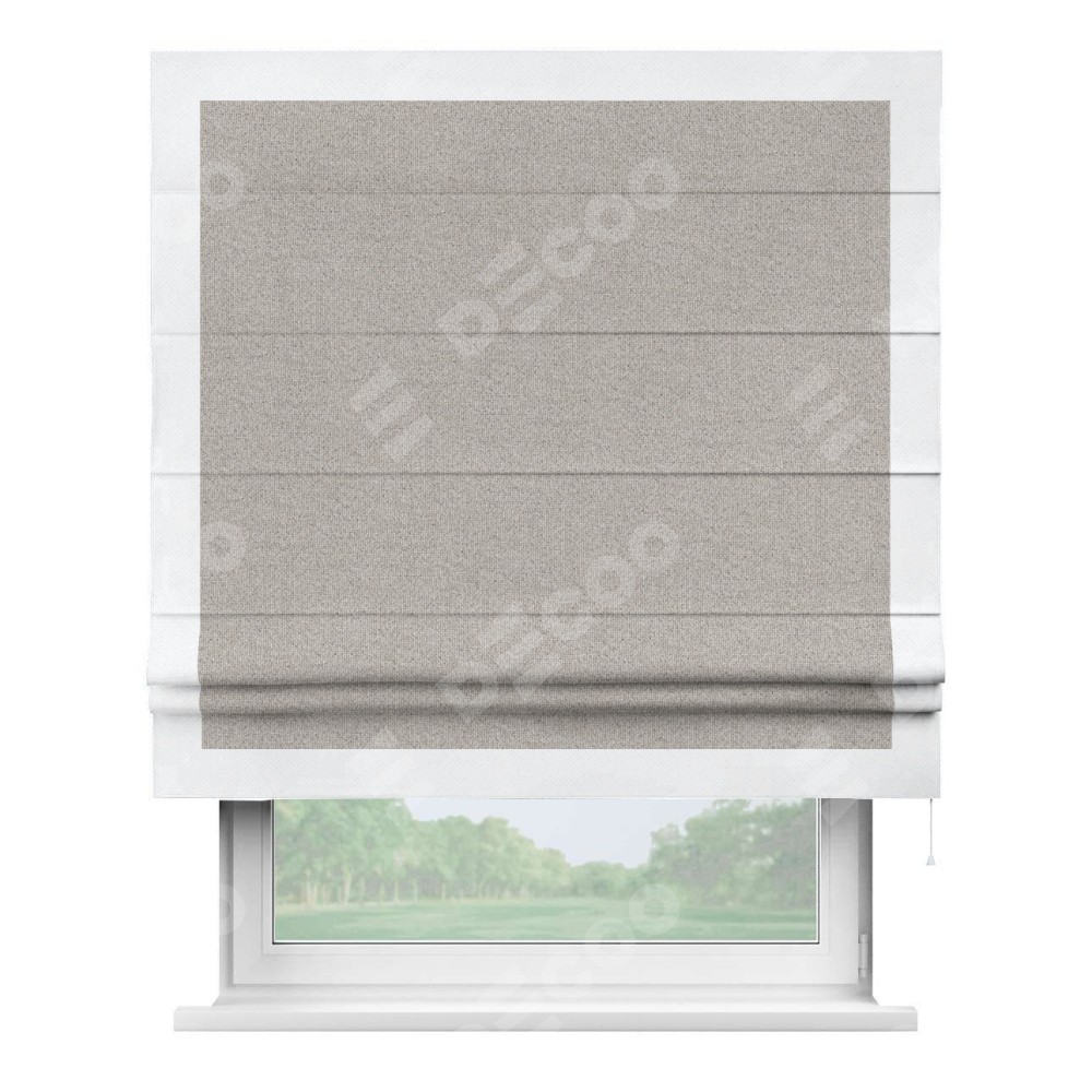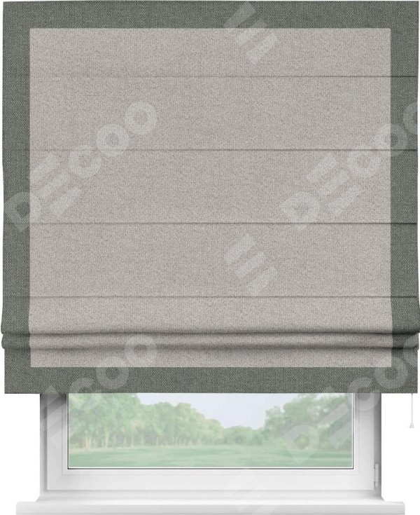 Римская штора «Кортин» для проема, лён димаут серо-бежевый с кантом Чесс