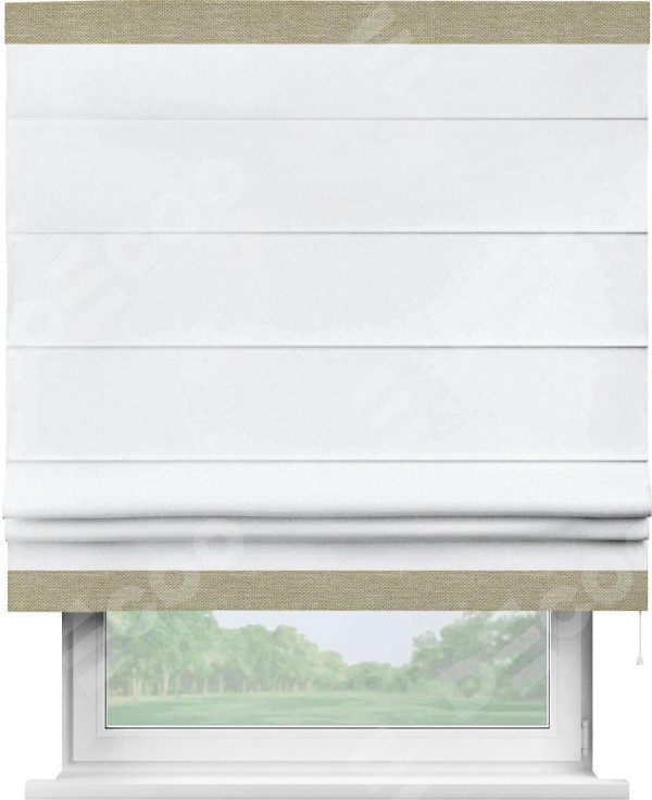 Римская штора «Кортин» для проема, лён димаут белый с кантом Горизонт