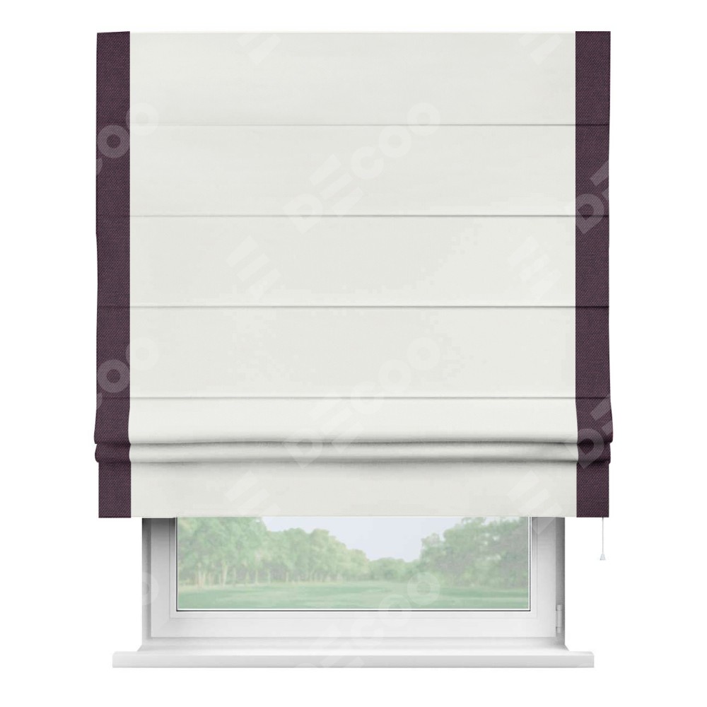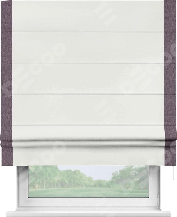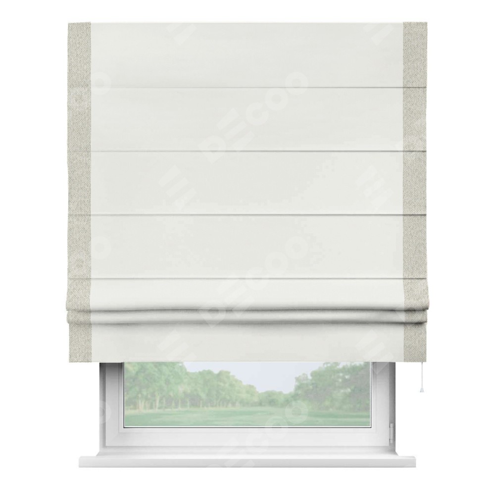 Римская штора «Кортин» для проема, лён димаут молочный с кантом Стрим Дуо
