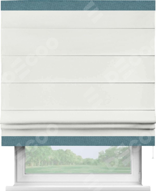 Римская штора «Кортин» для проема, лён димаут молочный с кантом Горизонт