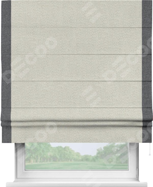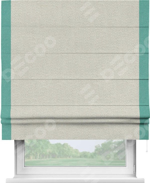 Римская штора «Cortin» для проёма, лён димаут светло-бежевый с кантом Стрим Дуо